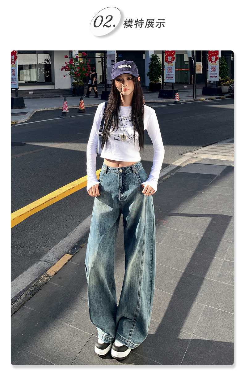 남성과 여성을위한 슬러브 해체 느슨한 시미 타르 청바지 2025 새로운 미국 스타일 복고풍 넓은 다리 캐주얼 바지스토어 가기
