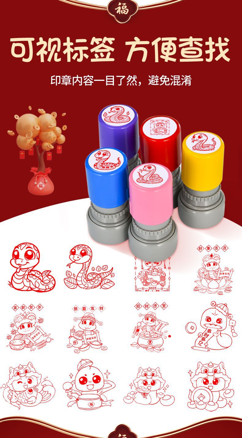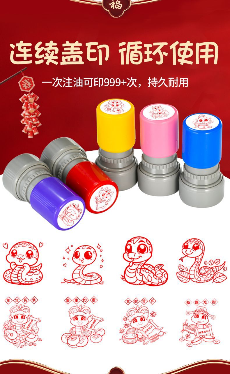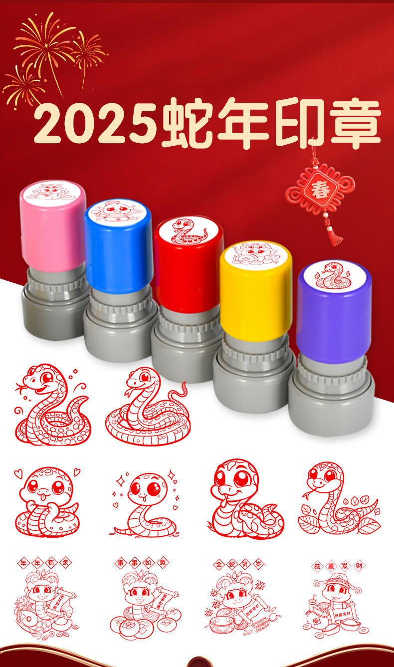뱀의 새해 복 많이 받으세요 귀여운 컬렉션 5 개의 축복 단어 물개 뱀 패턴 웨딩 축하 카드 작은 물개 봄 축제스토어 가기