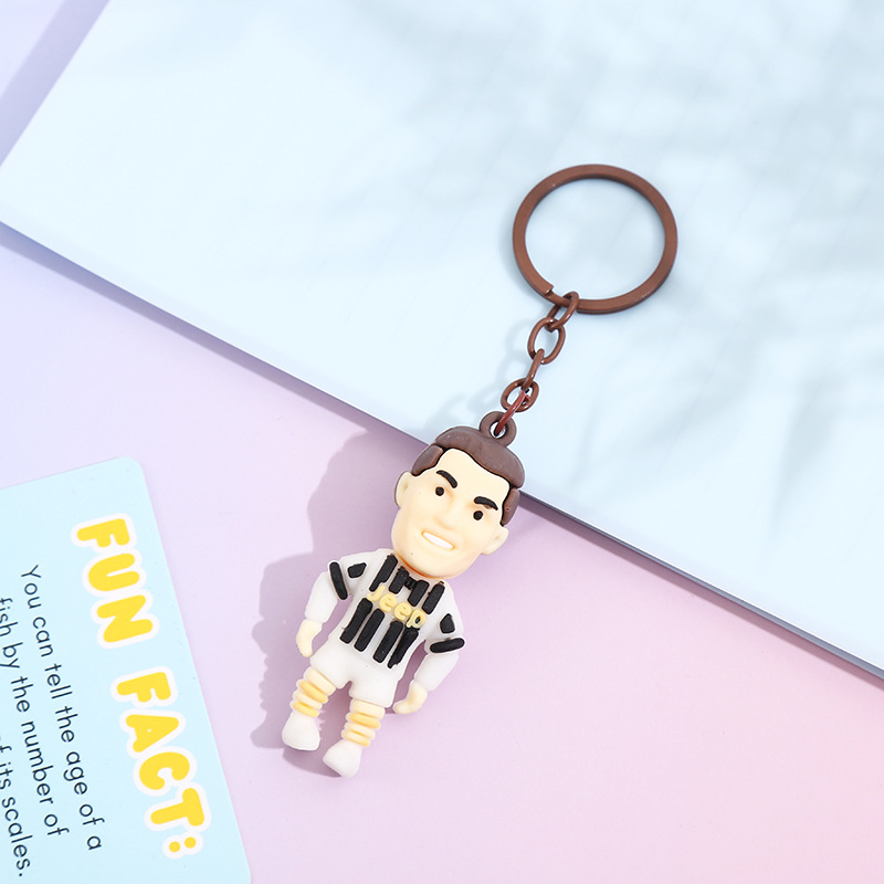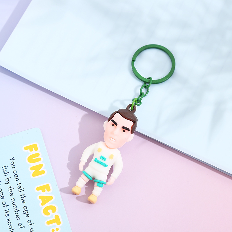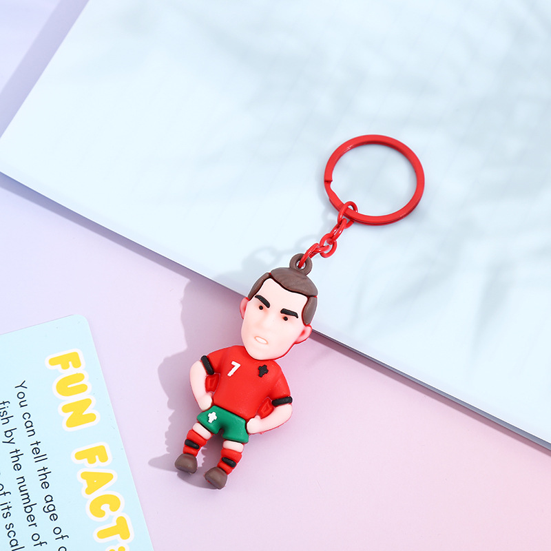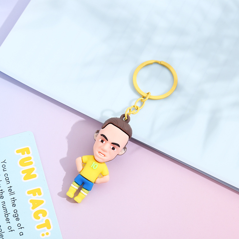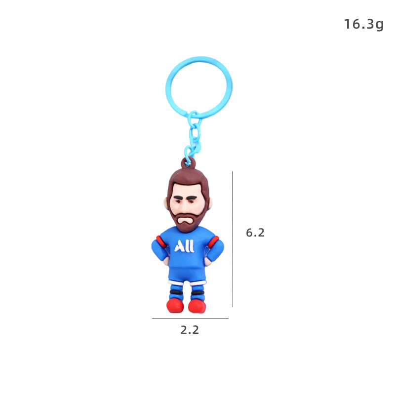 국경을 넘는 축구 스타 키체인 월드컵 메시 피규어 가방 장식 실리콘 키체인 링 선물 도매