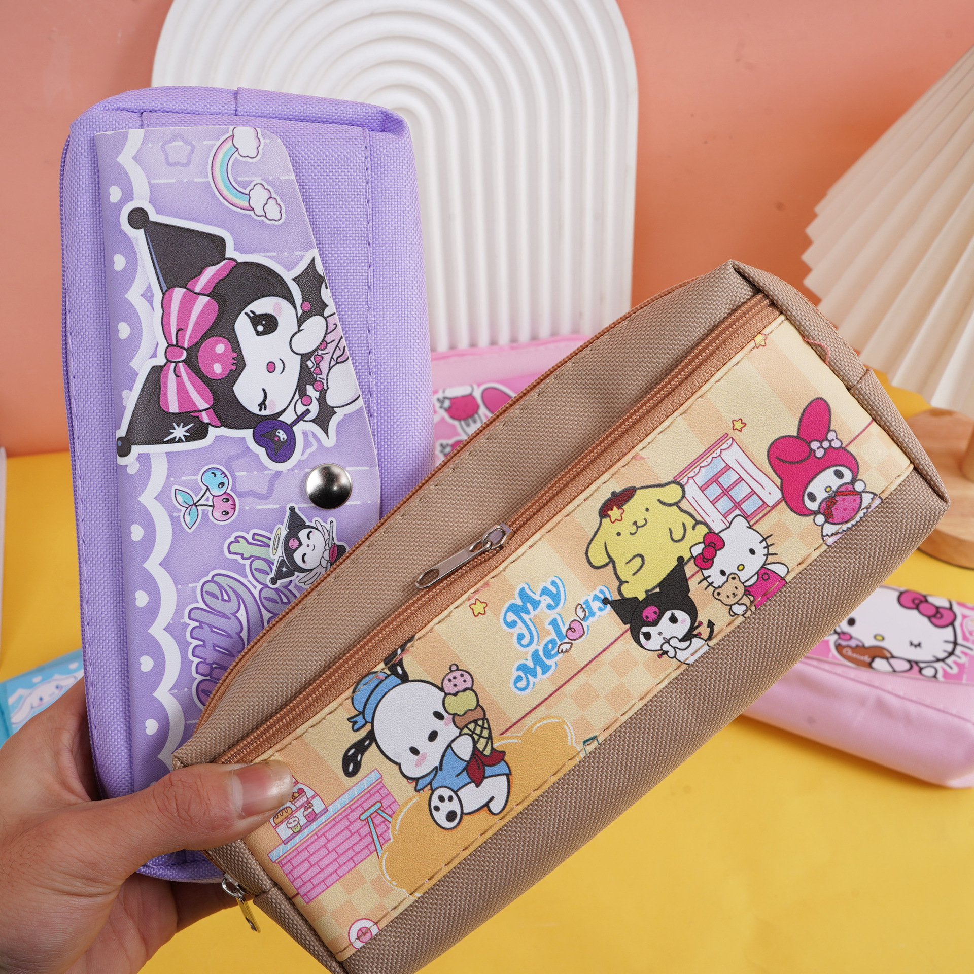 새로운 산리오 만화 귀여운 PU 연필 케이스 더블 지퍼 가방 초등학교 문구 보관 가방 소년과 소녀 가방스토어 가기