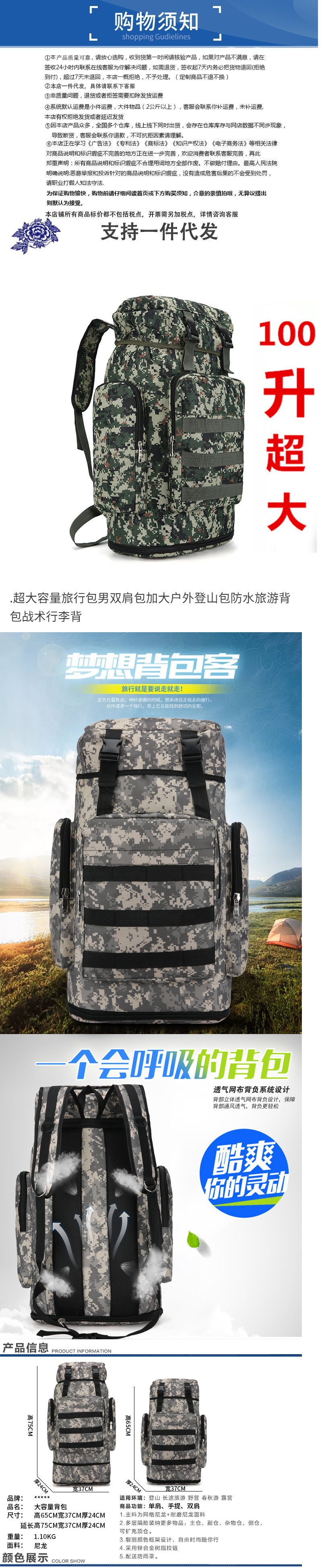 . 슈퍼 용량 여행 가방 남성 배낭 초대형 야외 등산 가방 방수 여행 배낭 전술 수하물 백