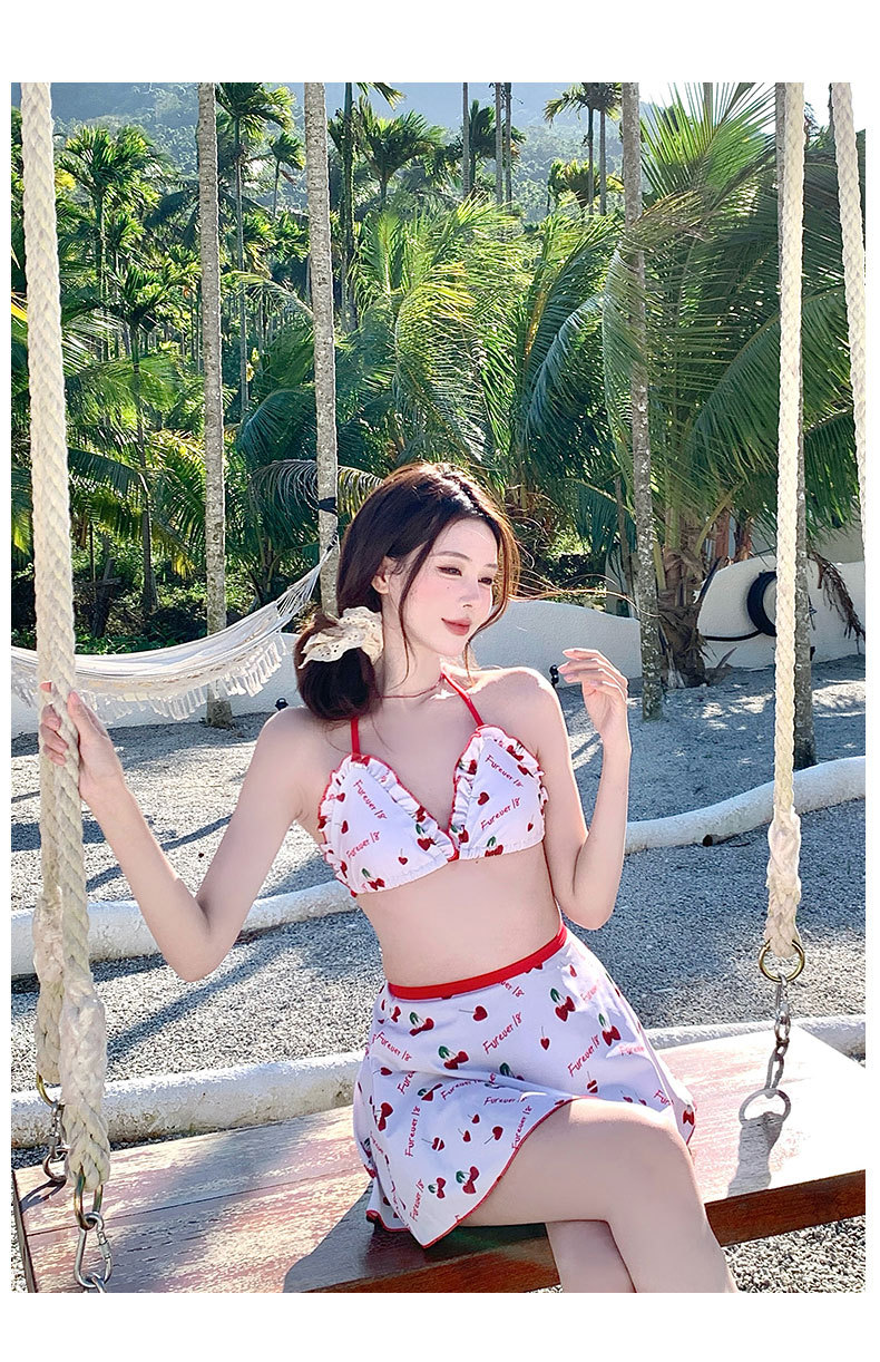 비키니 퓨어 욕망 3 피스 수영복 여성 2025 분할 섹시 사이즈 가슴 푸시 업 수영복 온천 보수스토어 가기