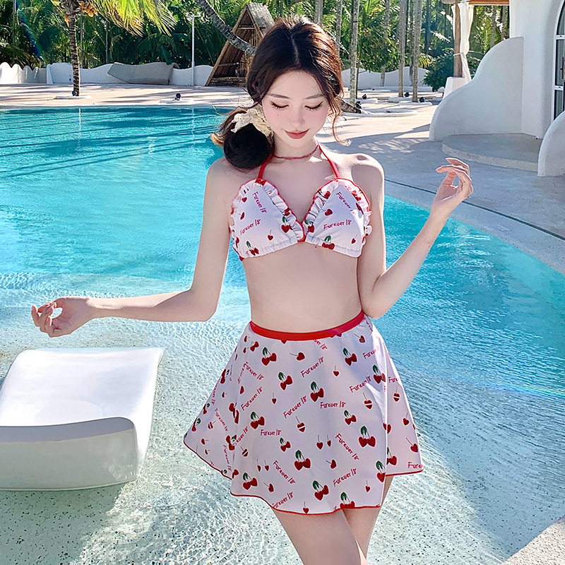 비키니 퓨어 욕망 3 피스 수영복 여성 2025 분할 섹시 사이즈 가슴 푸시 업 수영복 온천 보수