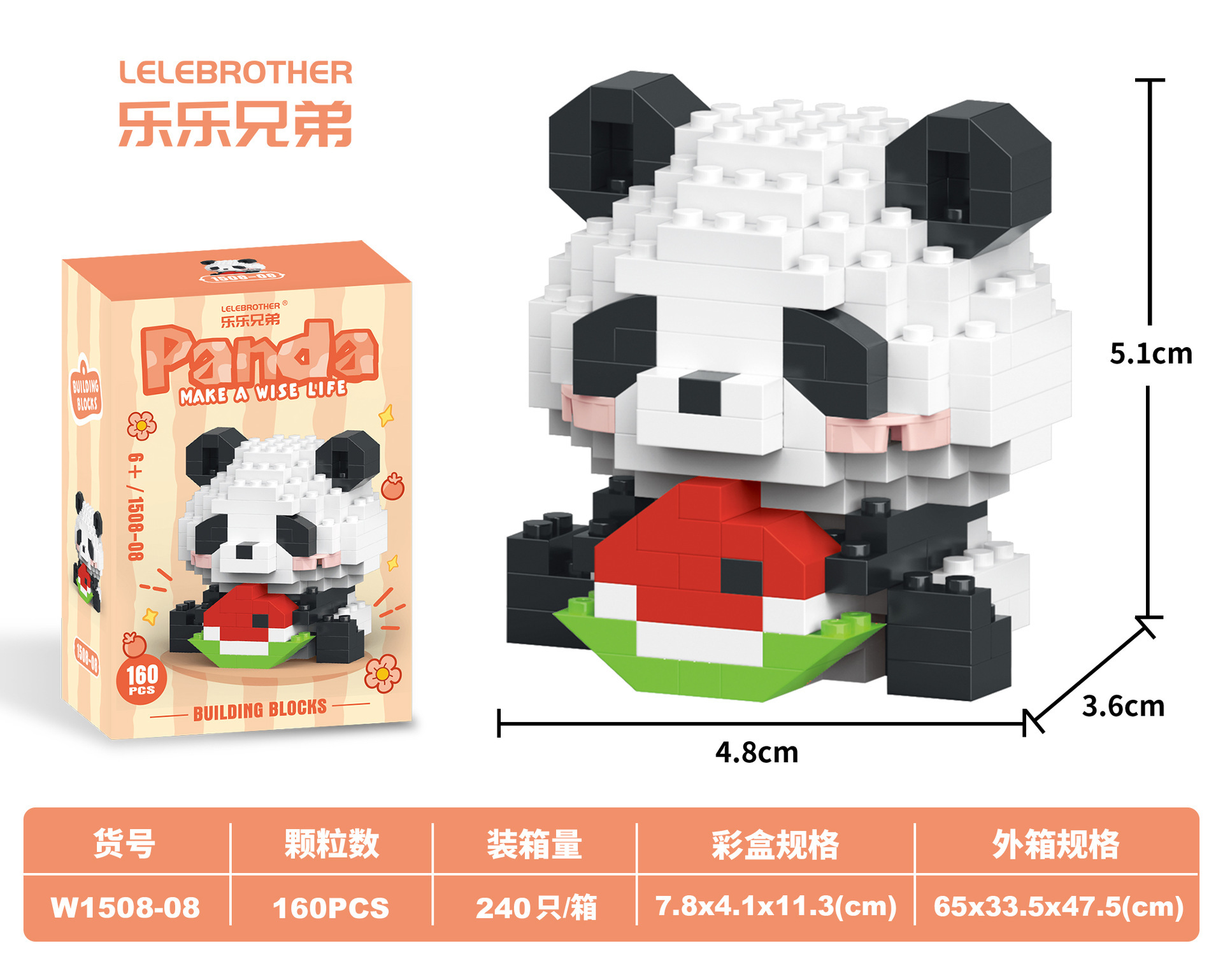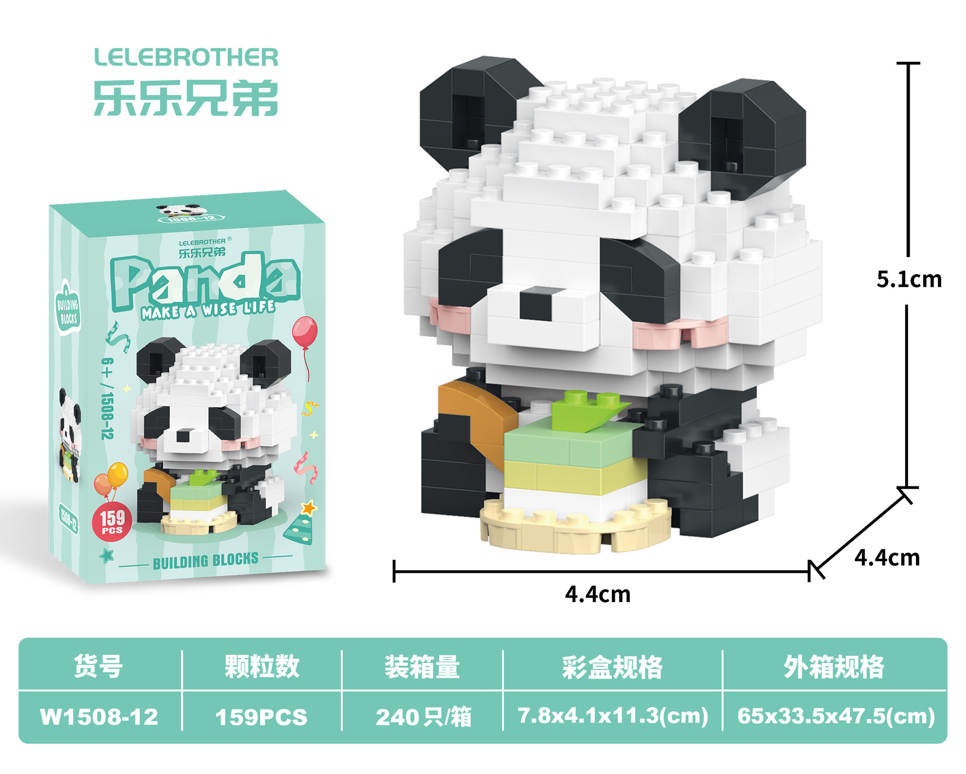Lele Brothers W1508 팬더 모델 장식품 DIY 교육 장난감 마이크로 다이아몬드 작은 입자 빌딩 블록 선물