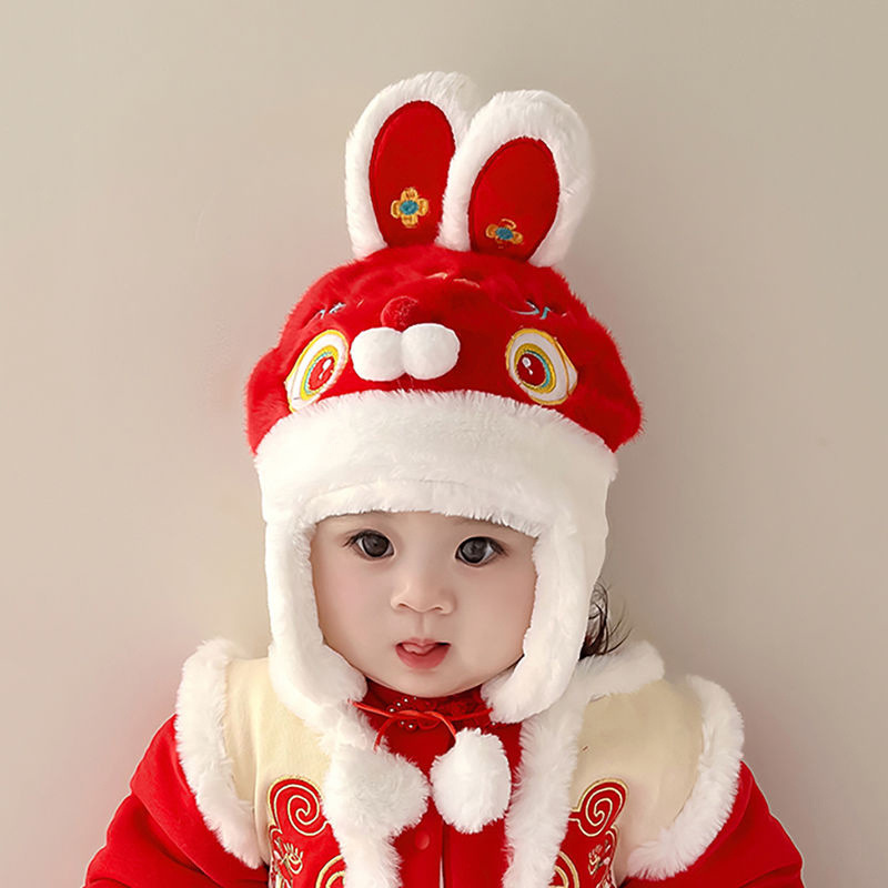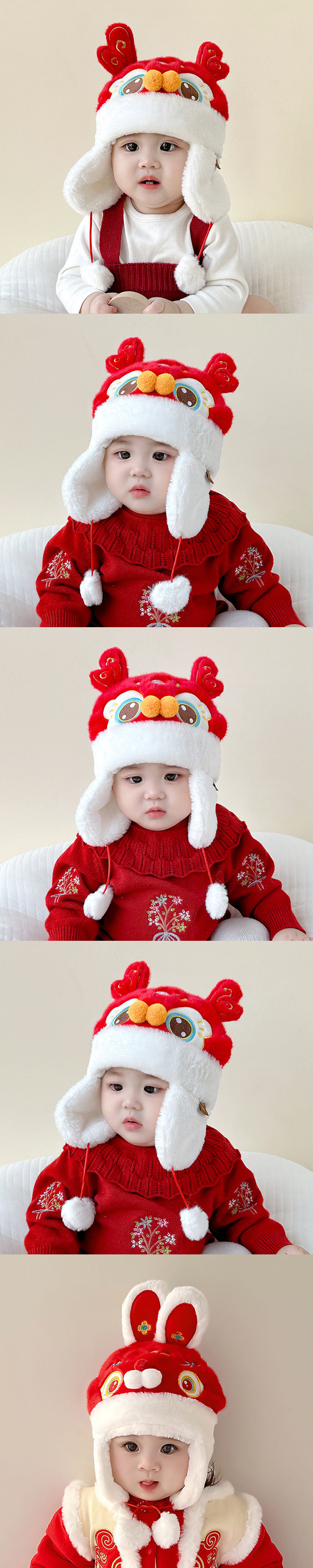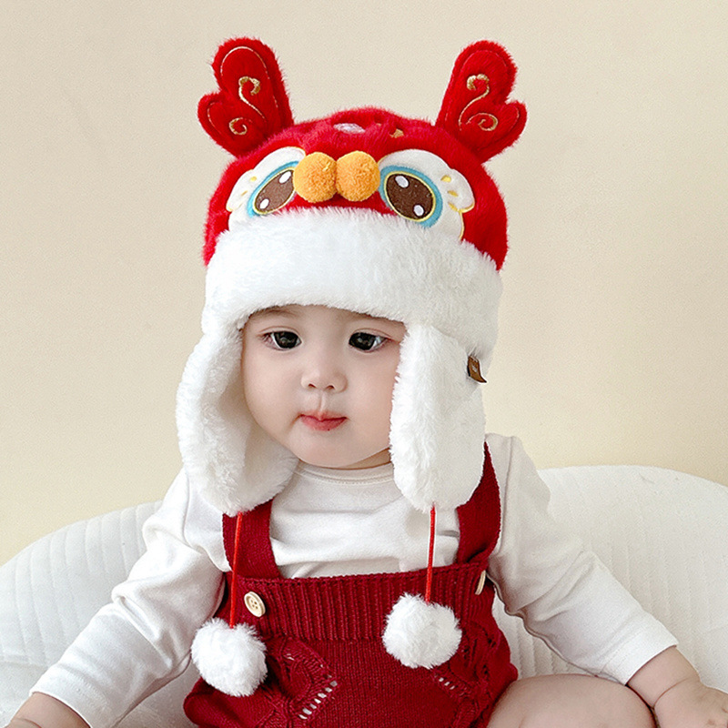 아기 모자 붉은 새해 모자 아기 새해 축제 즐거운 모자 따뜻한 어린이 해 오래된 귀 보호 모자 가을과 겨울스토어 가기