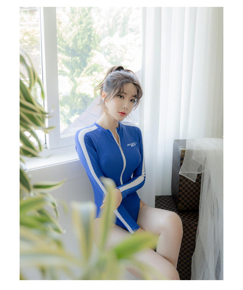 2025 새로운 한국 다이빙 세트 여성용 원피스 수영복 긴팔 단색 해파리 세트 스노클링 슬림 서핑 여름 수영복스토어 가기