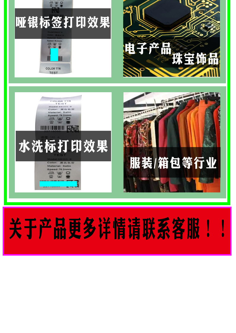 科宝专业做条码耗材:碳带 标签。碳带有 蜡基碳带 增强蜡基碳带 混合碳带 增强混合碳带 树脂碳带(彩色树脂碳带) 水洗碳带(水洗彩色碳带) 耐高温树脂碳带 热缩套管碳带 耐强酸碱碳带 彩色碳带有红/黄/蓝/绿/金色/ 银色/橙色 粉红色 白色 灰色等色带 。了解更多请联系客服。