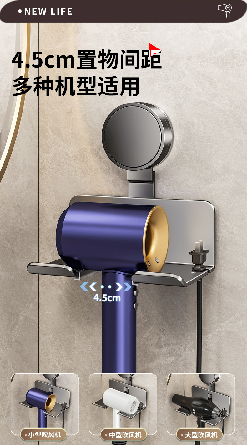 석션 컵 헤어 드라이어 보관 랙 펀치없는 벽 장착 헤어 드라이어 선반 교수형 욕실 드럼 보관 브래킷 인공물