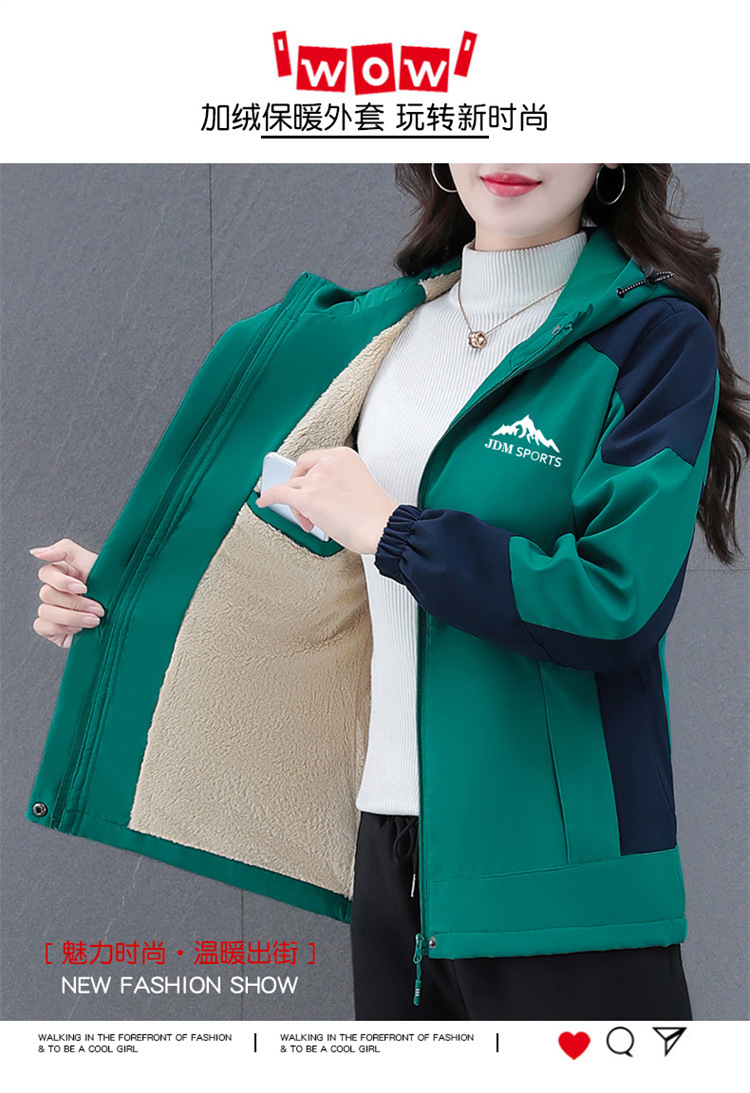 기모 두꺼운 따뜻한 재킷 재킷 여성 가을 및 겨울 새로운 서양식 대비 컬러 야외 방풍 지퍼 카디건스토어 가기