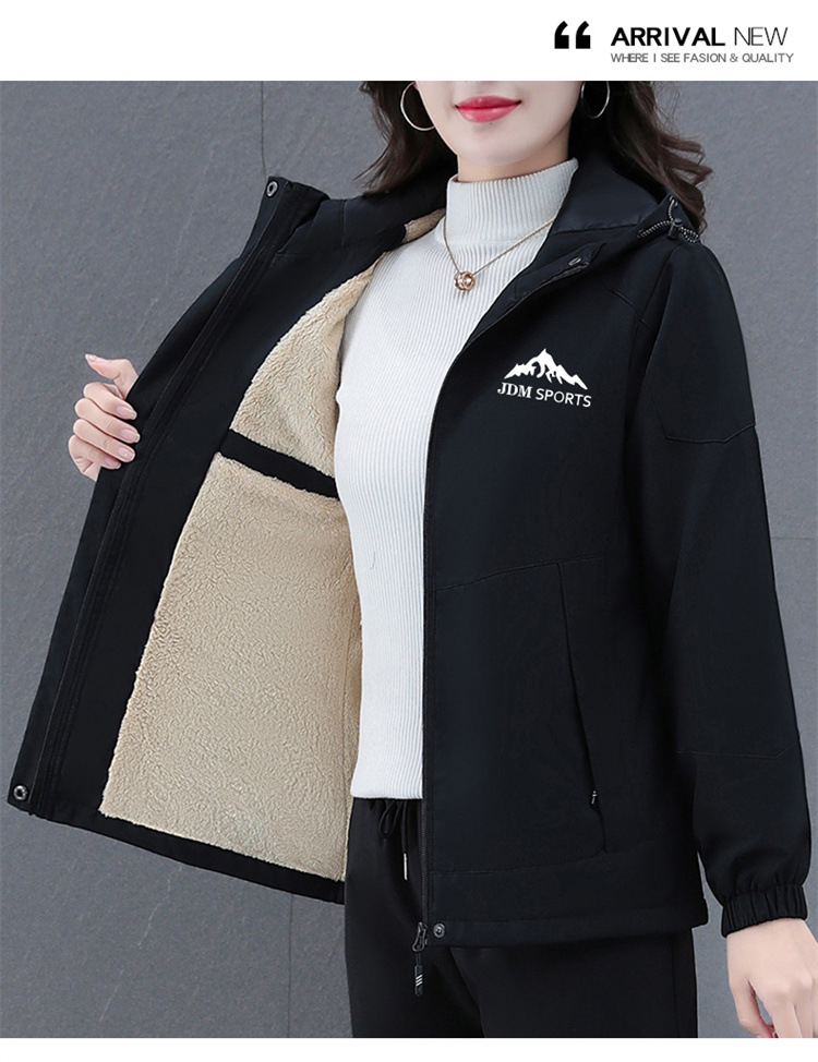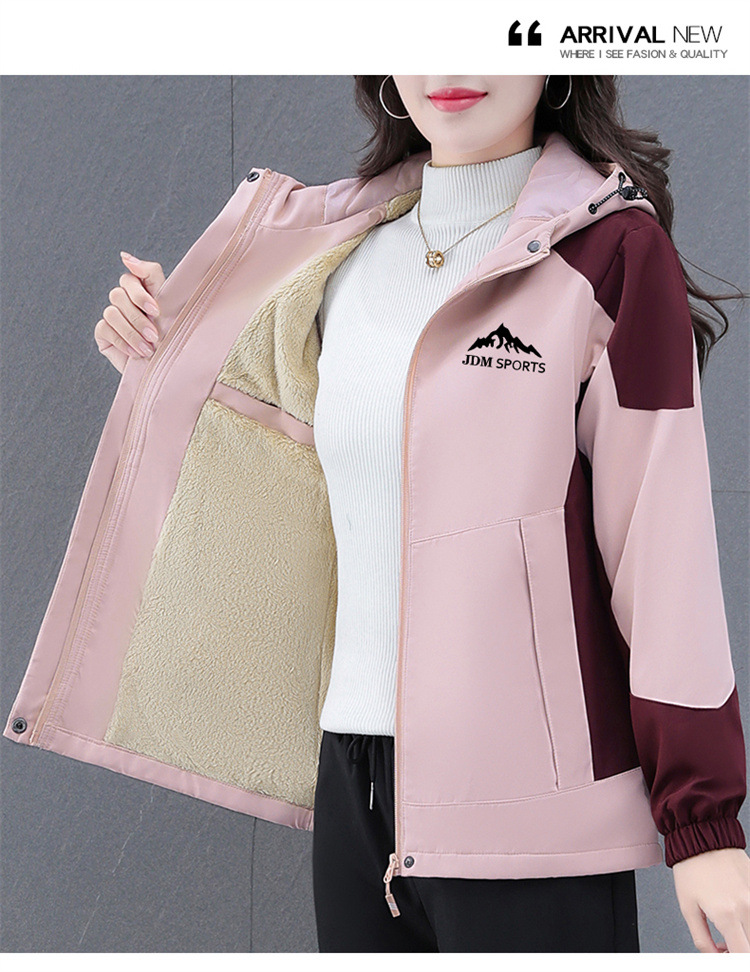 기모 두꺼운 따뜻한 재킷 재킷 여성 가을 및 겨울 새로운 서양식 대비 컬러 야외 방풍 지퍼 카디건