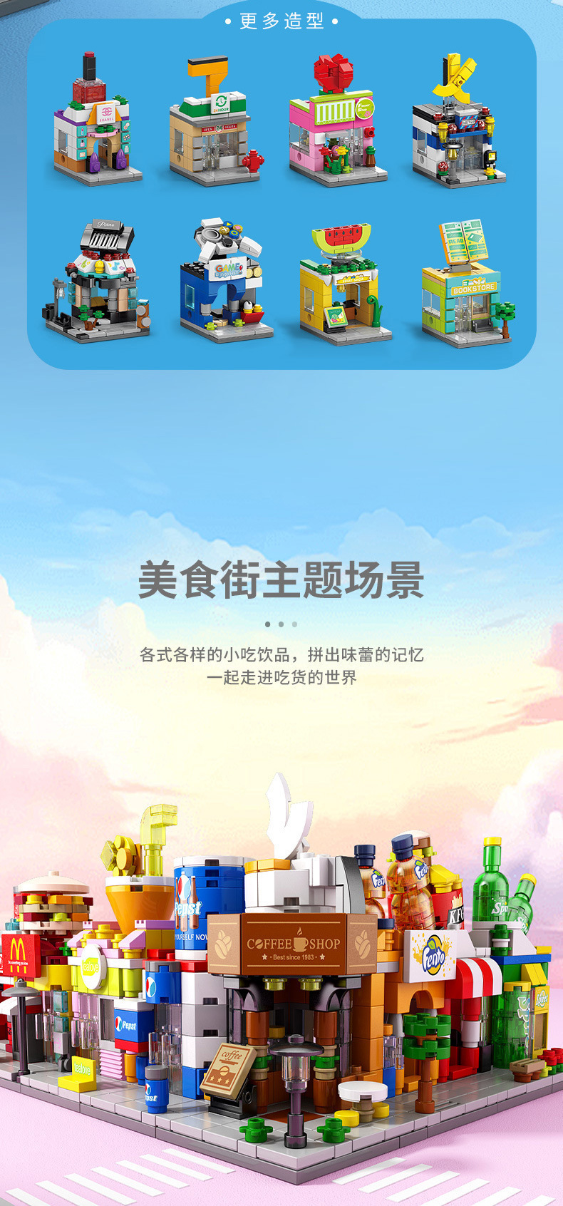 변수 스트리트 뷰 빌딩 블록 도시 생활 시리즈 모델 빌딩 호환 레고 어린이 장난감 장식 선물스토어 가기