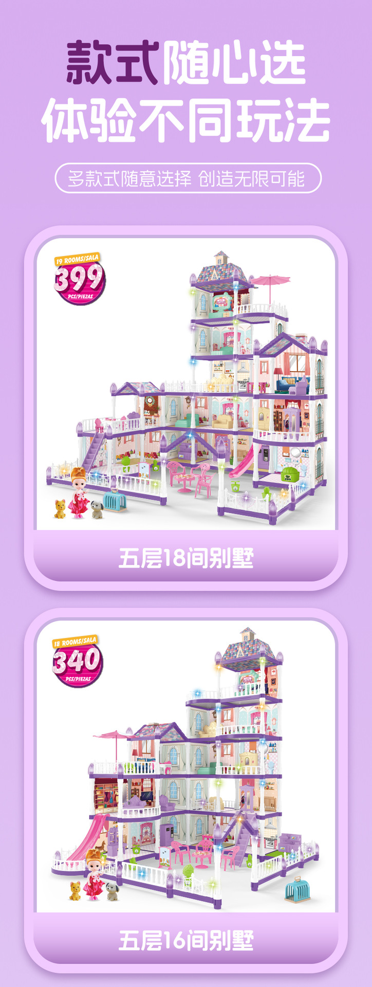 跨境爆款,别墅城堡玩具套装,支持客户定制,包装定制,可提供CPC等跨境平台相关证书。工厂直营, 工厂店价格优势,品质保障,量多价更优!欢迎参观工厂!