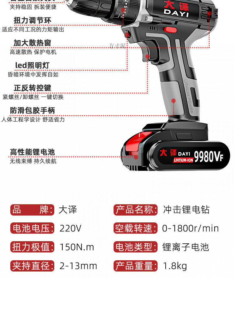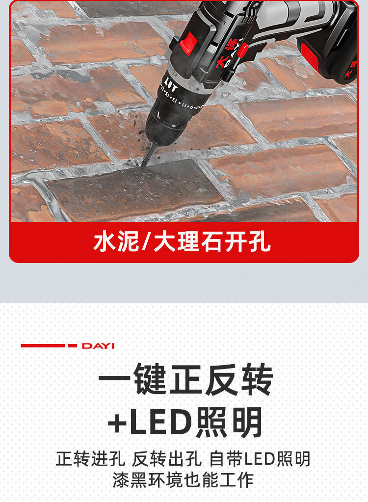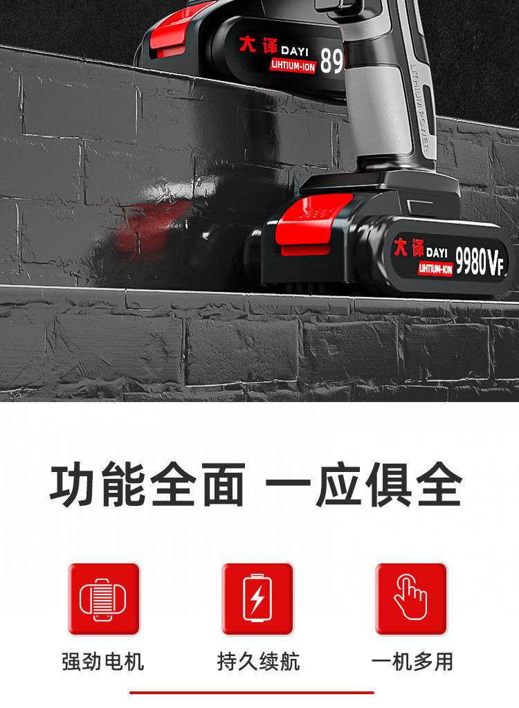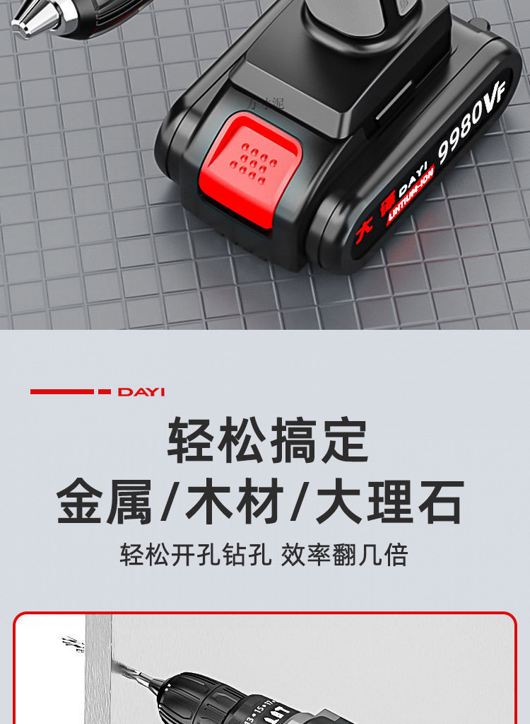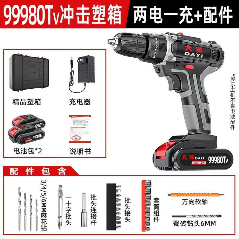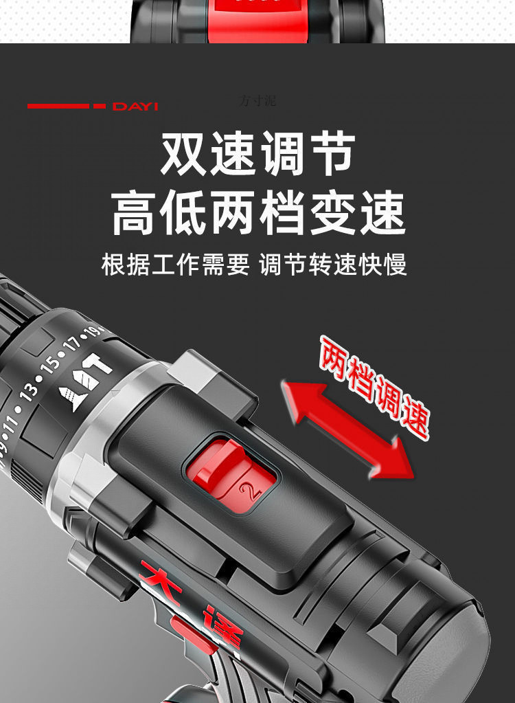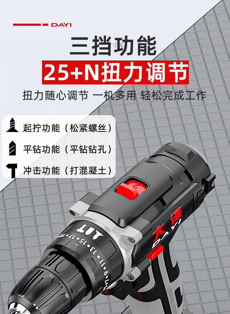 Da Yi 산업 충전 드릴 고출력 전기 드릴 이중 속도 리튬 배터리 충격 드릴 핸드 드릴 가정용 다기능 드라이버 공장스토어 가기