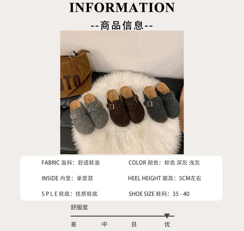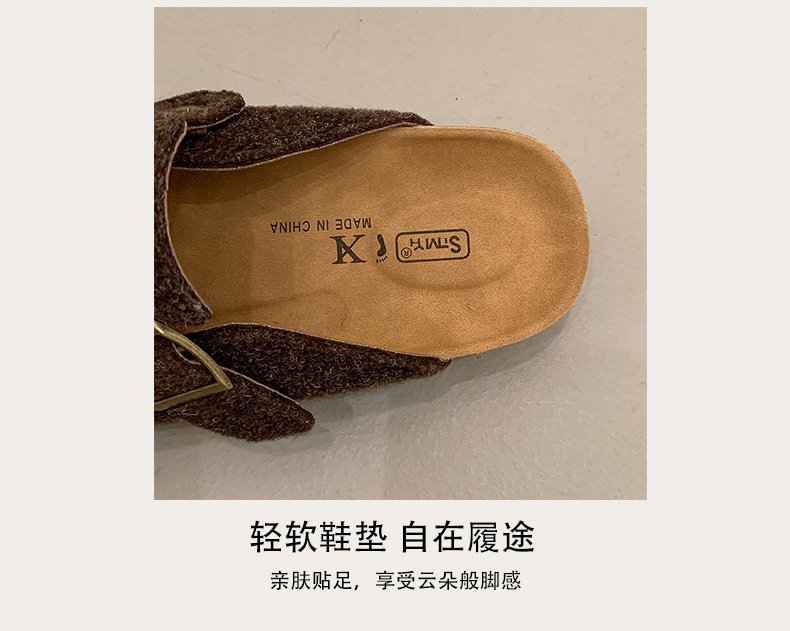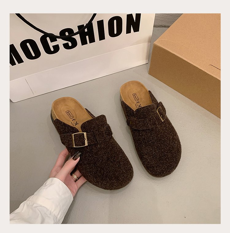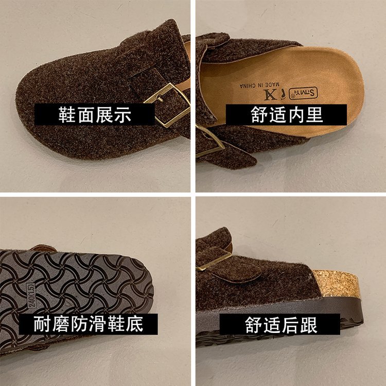게으른 사람들을 위한 슬립온 앞굽 가리개 슬리퍼, 여성용 외출용 2025 가을 겨울 신상 인터넷 인기 만능 플랫 바닥 소프트 코르크 비르켄슈타인 슈즈스토어 가기