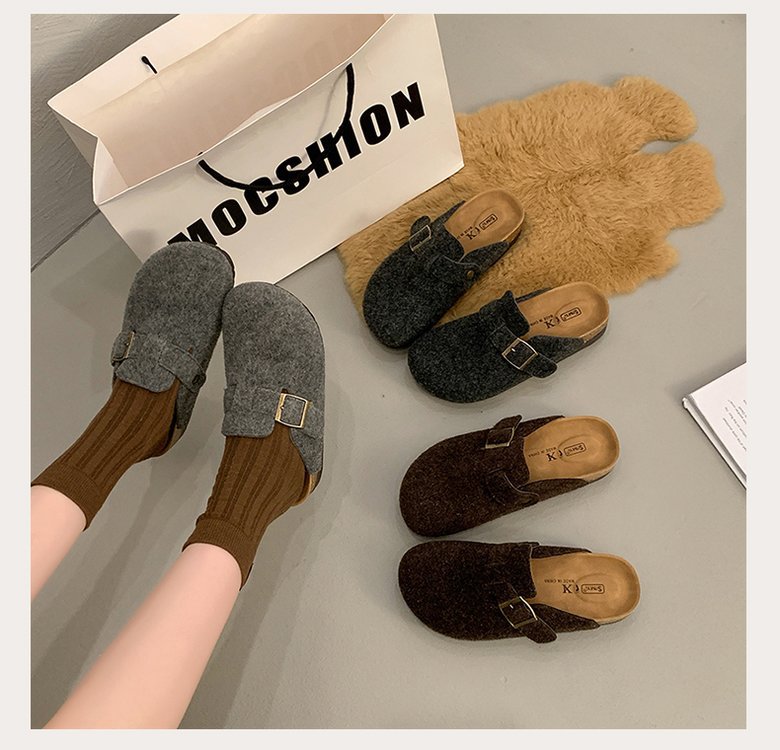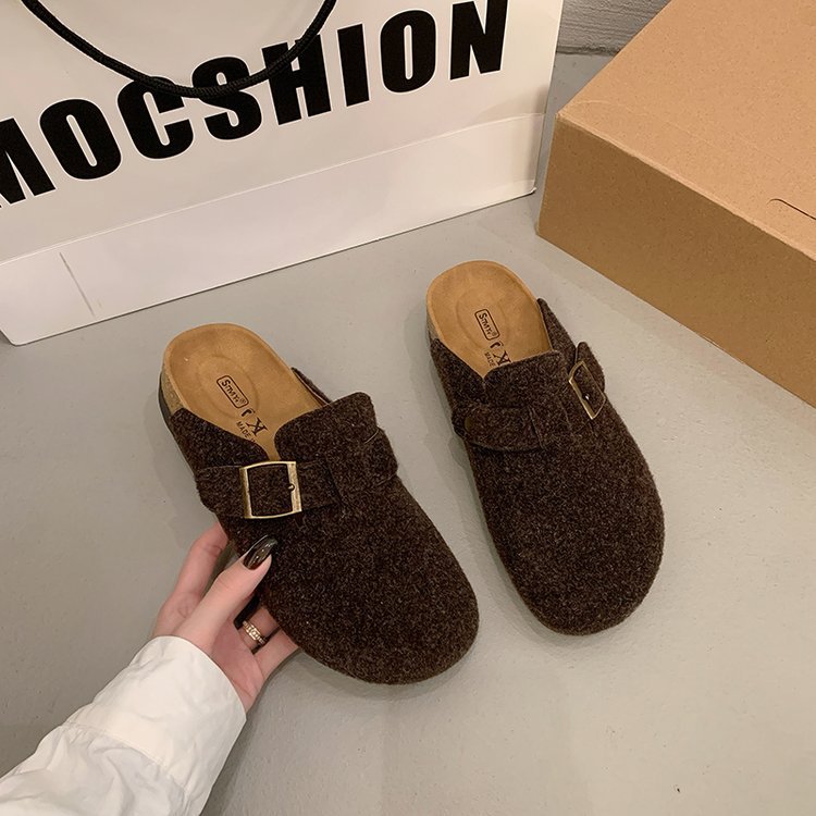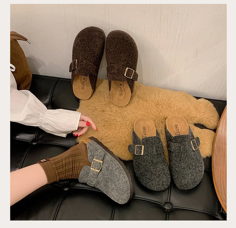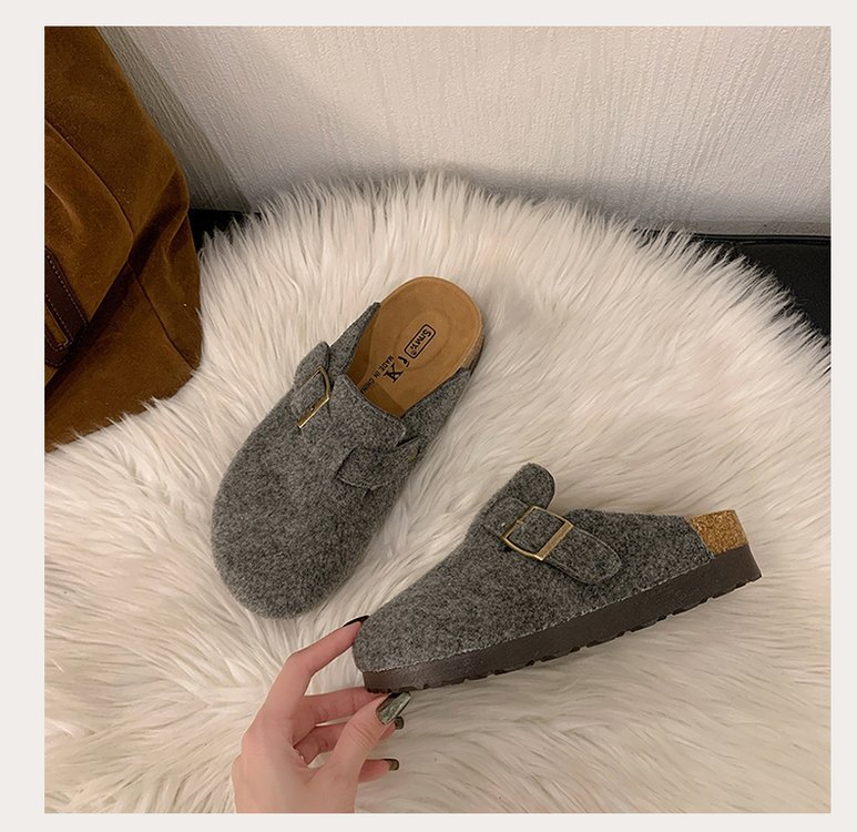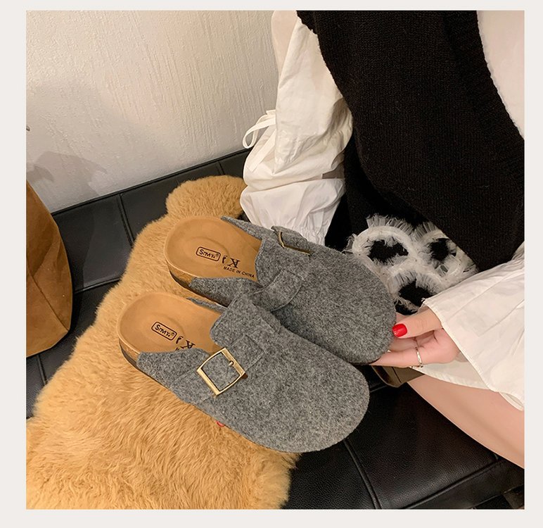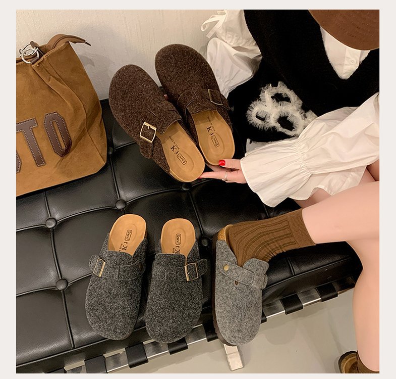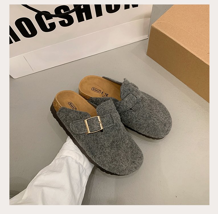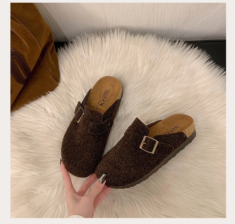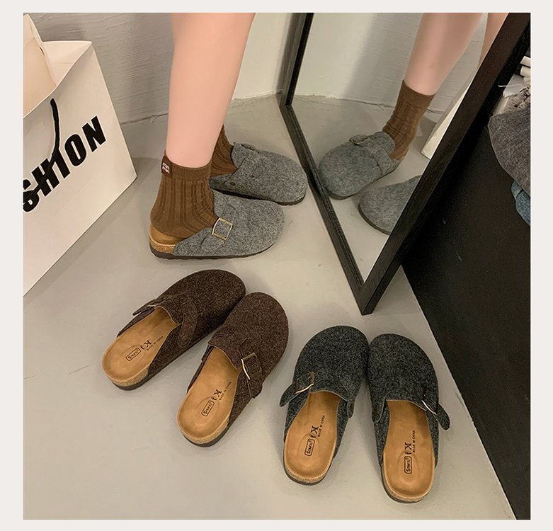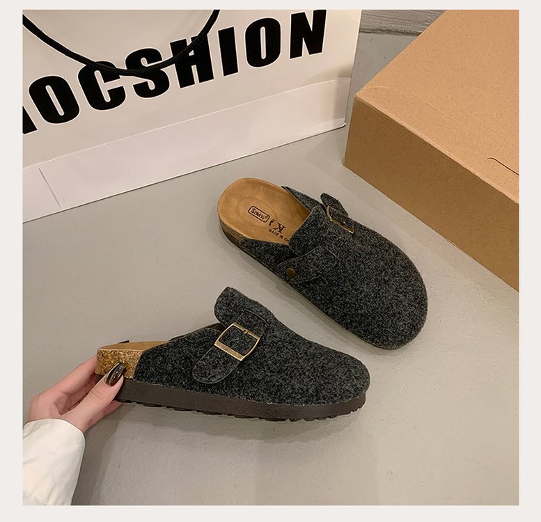 게으른 사람들을 위한 슬립온 앞굽 가리개 슬리퍼, 여성용 외출용 2025 가을 겨울 신상 인터넷 인기 만능 플랫 바닥 소프트 코르크 비르켄슈타인 슈즈
