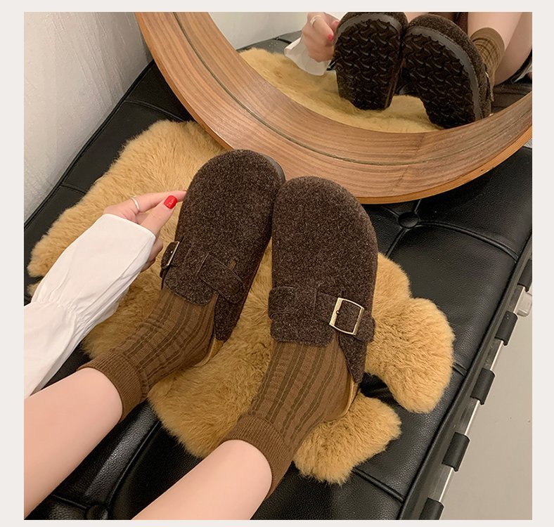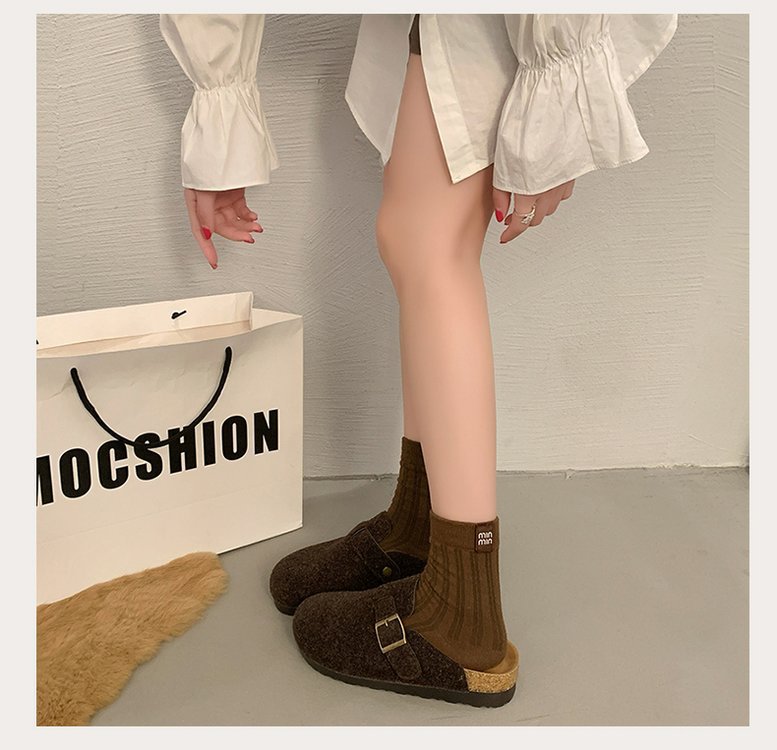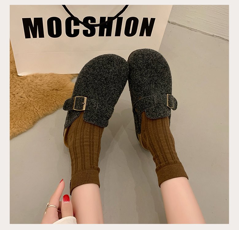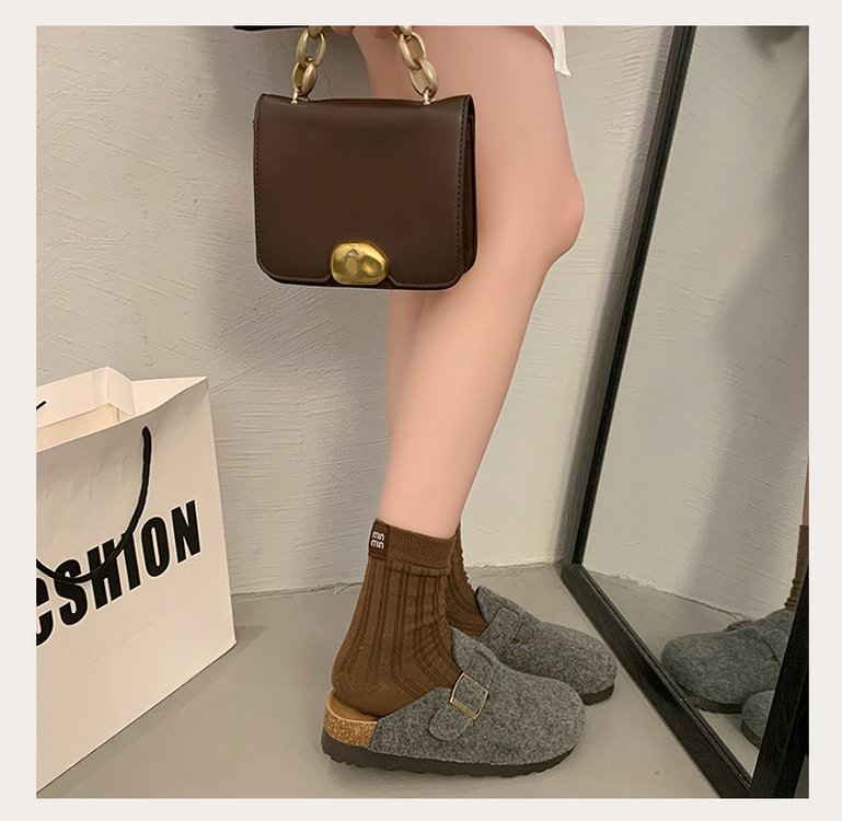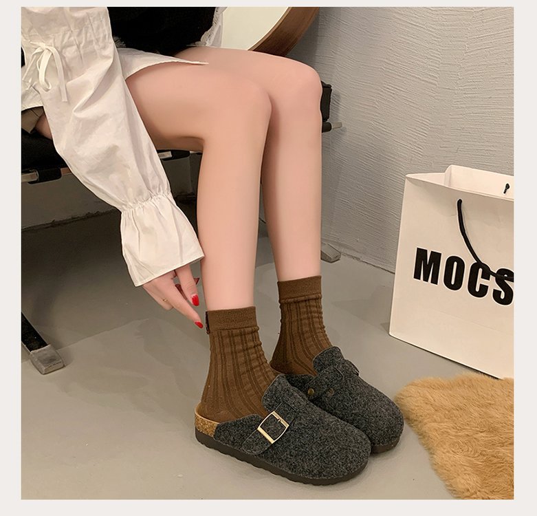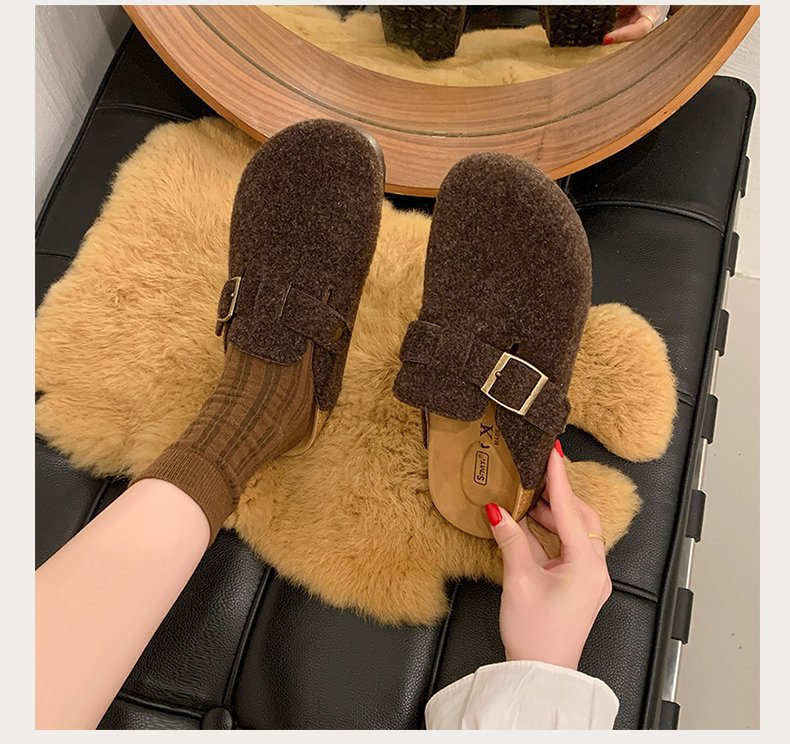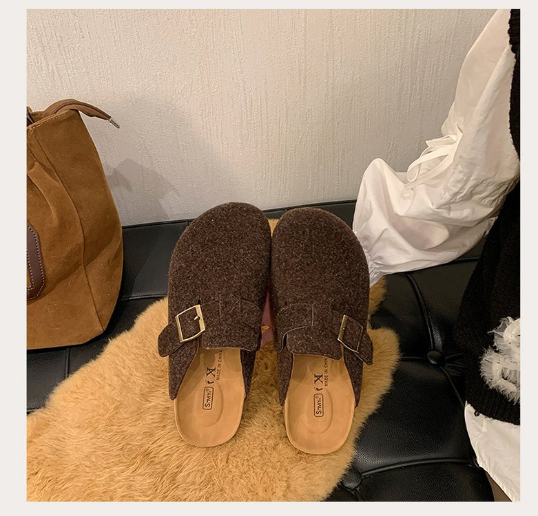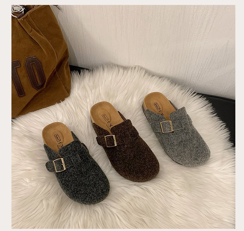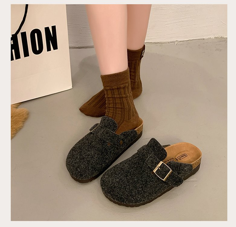 게으른 사람들을 위한 슬립온 앞굽 가리개 슬리퍼, 여성용 외출용 2025 가을 겨울 신상 인터넷 인기 만능 플랫 바닥 소프트 코르크 비르켄슈타인 슈즈