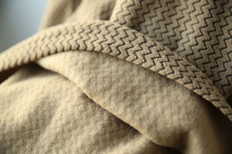 户外公司大货剩余,肌理抓绒面料,波浪形提花设计,整整体搭配有设计感!