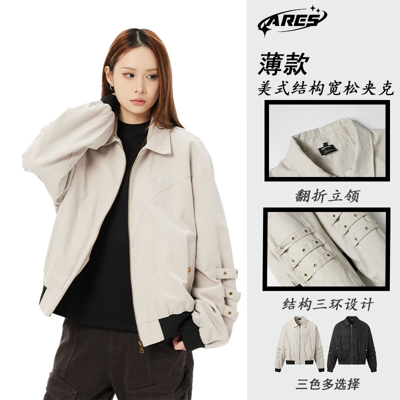 아레스 아메리칸 스타일 가을 겨울 레트로 스트리트 심플 지퍼 구조 워크웨어 재킷 하이 스트리트 남성용 얇은 재킷스토어 가기