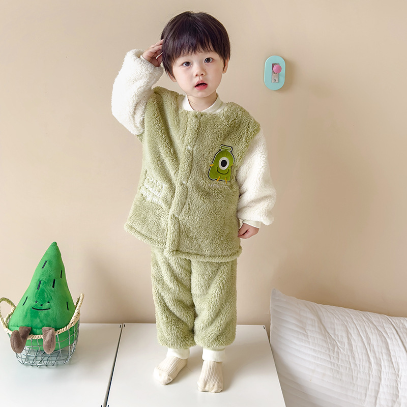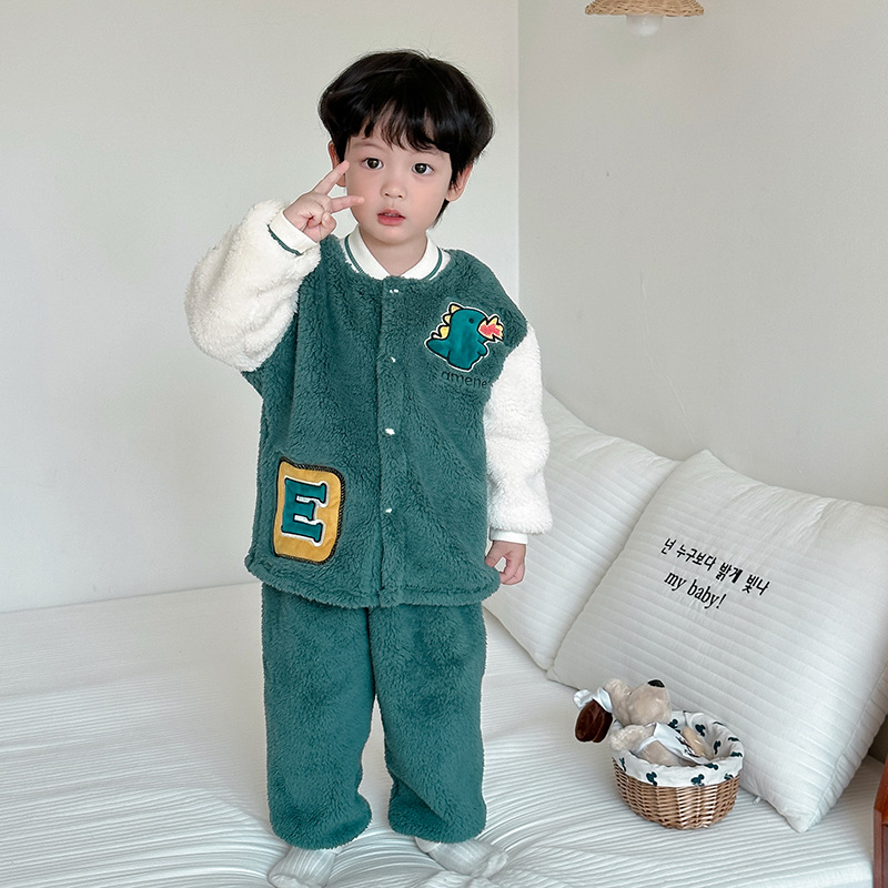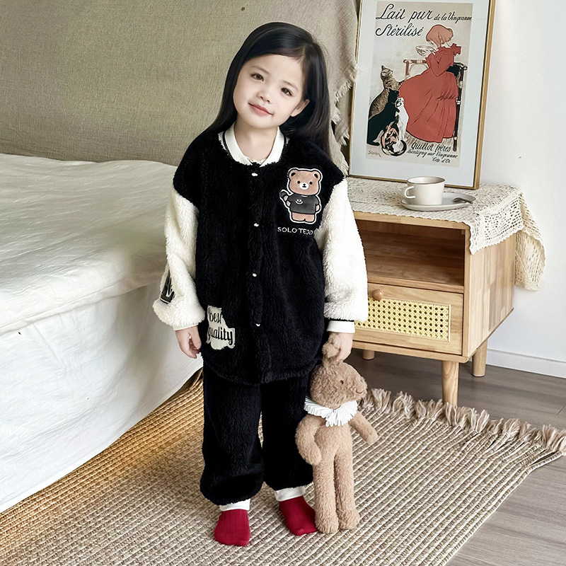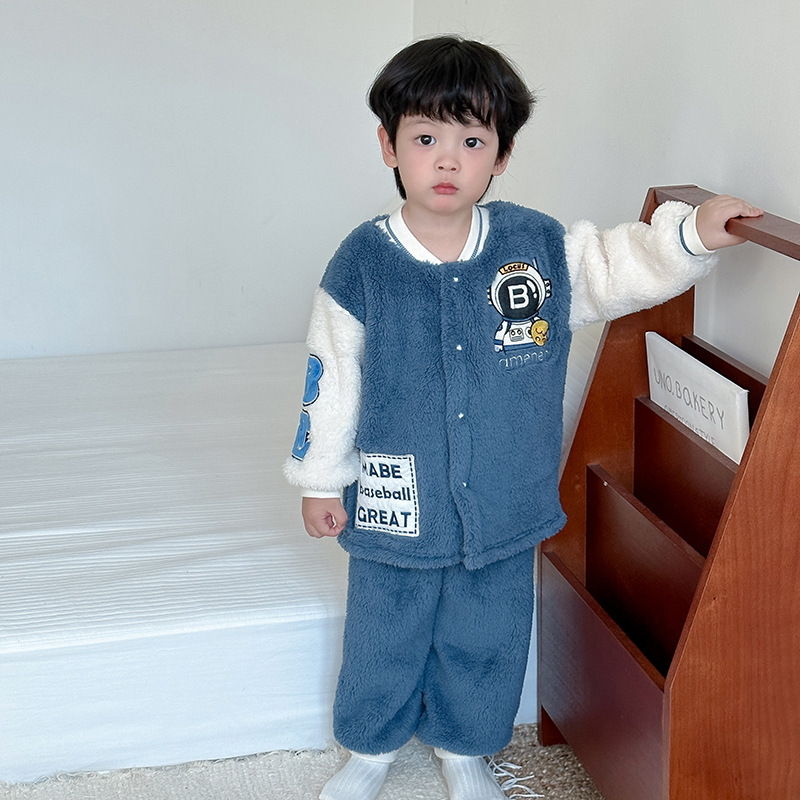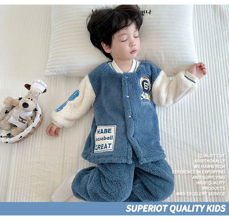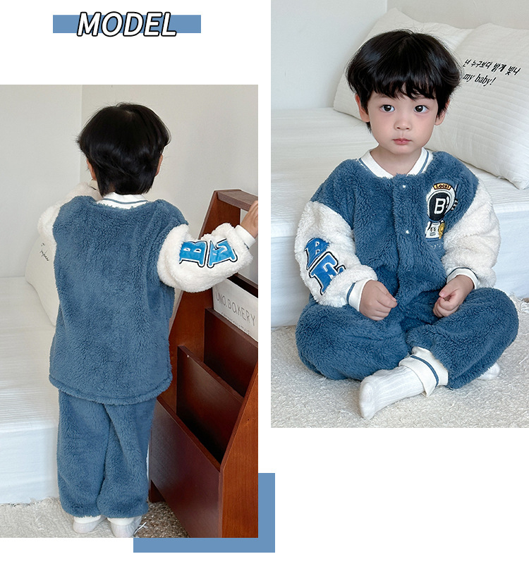 어린이 잠옷 소녀 2024 가을/겨울 기모 두꺼운 봉제 소년 아기 따뜻한 집 옷 야구 스타일 세트스토어 가기