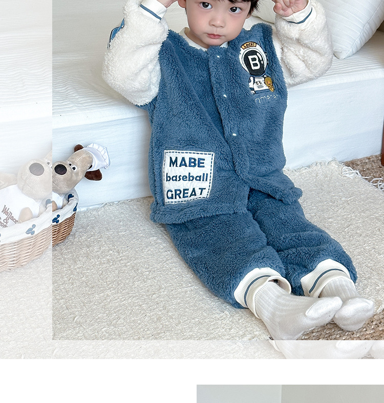 어린이 잠옷 소녀 2024 가을/겨울 기모 두꺼운 봉제 소년 아기 따뜻한 집 옷 야구 스타일 세트