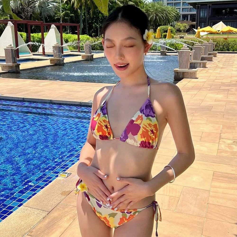 수영복 여성용 복고풍 인쇄 스파이스 소녀 3 점 스트랩 비키니 인 온천 섬 홀리데이 스타일 작은 가슴 모임스토어 가기
