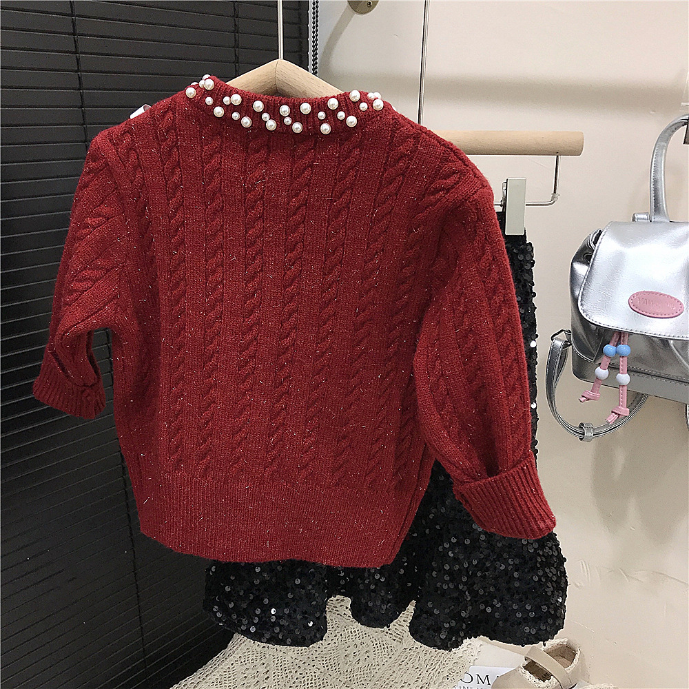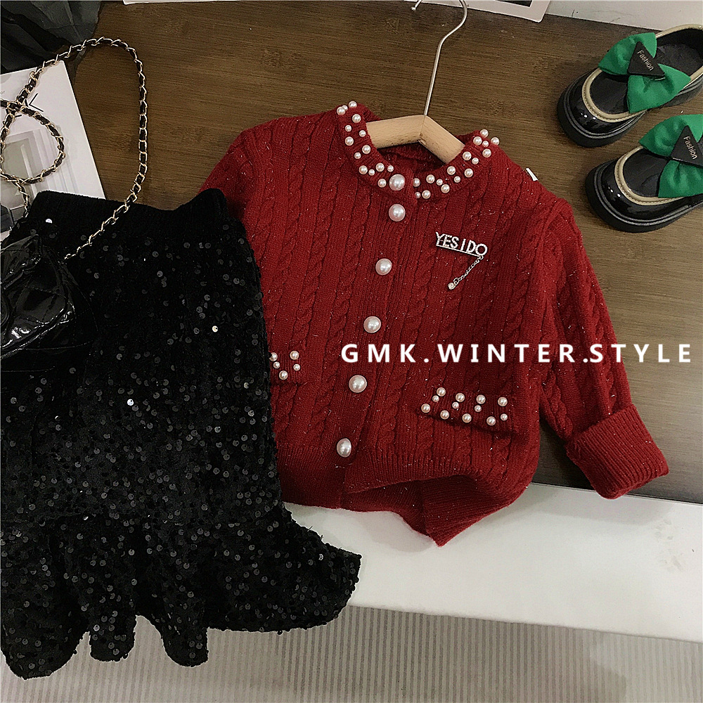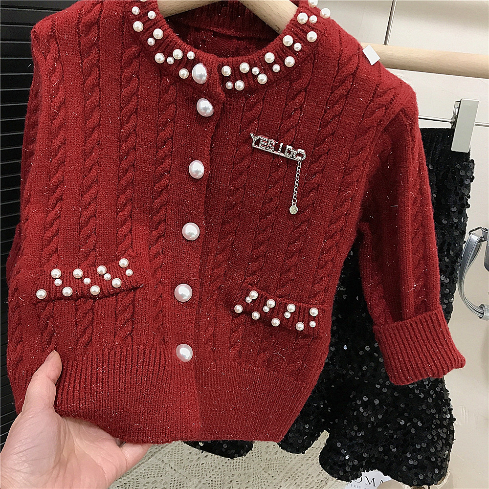 소녀의 샤넬 스웨터 가을과 겨울 새로운 어린이 서양식 트위스트 니트 스웨터 카디건 아기의 새해 서비스 대외 무역스토어 가기