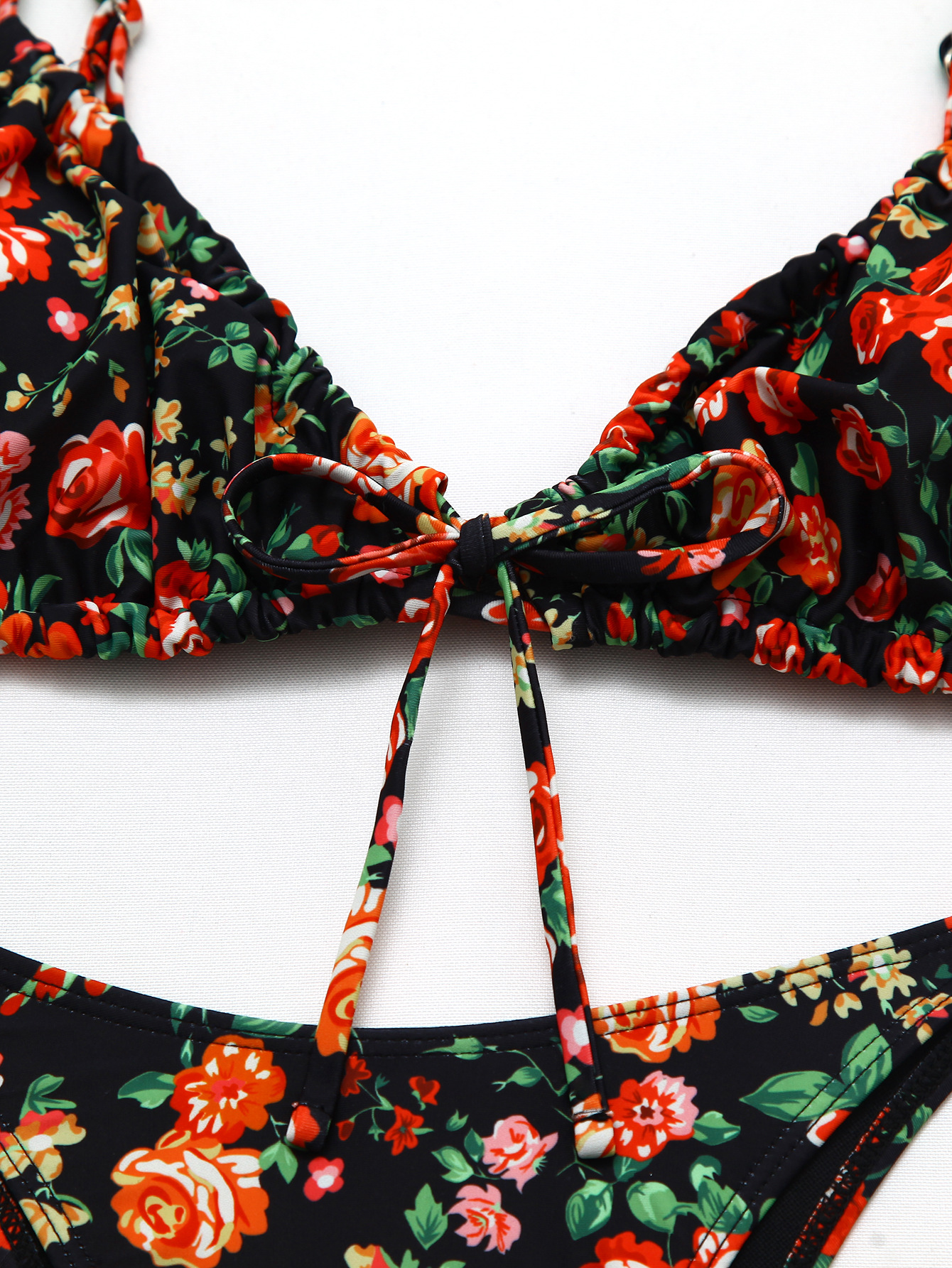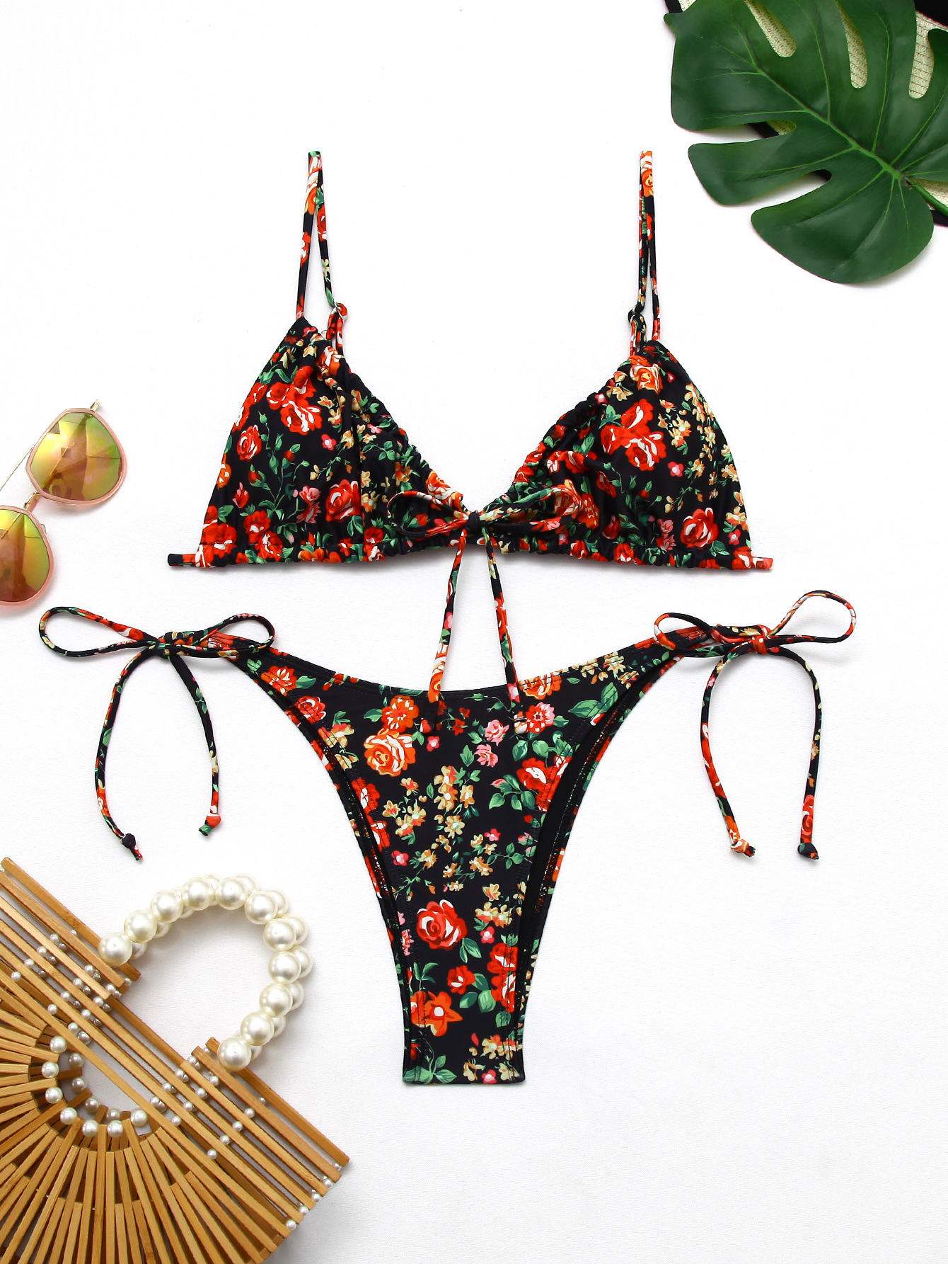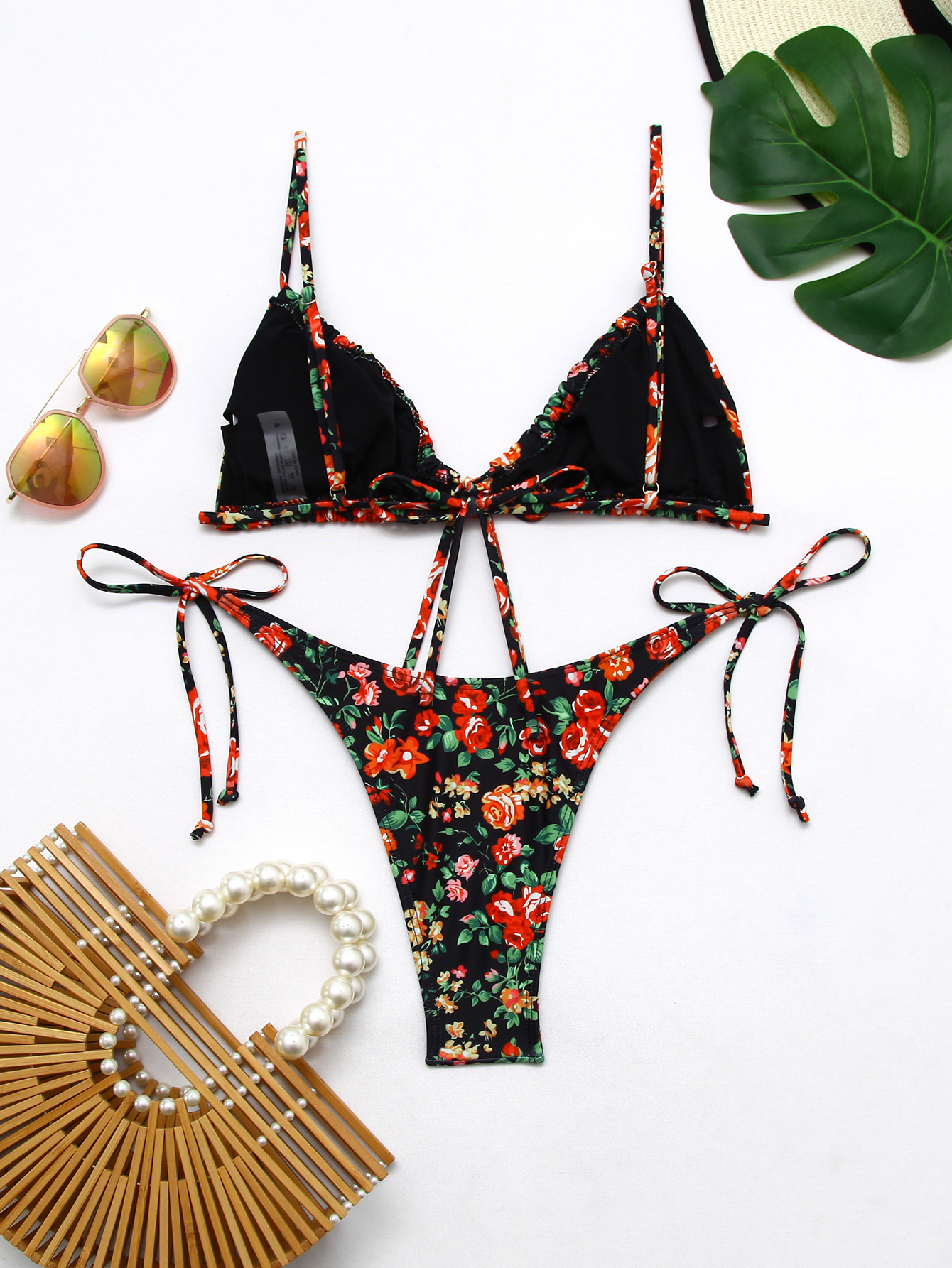 유럽과 미국의 국경을 넘는 새로운 수영복 여성 재고 섹시한 슬리밍 백리스 스트랩 인쇄 브리프 비키니 수영복