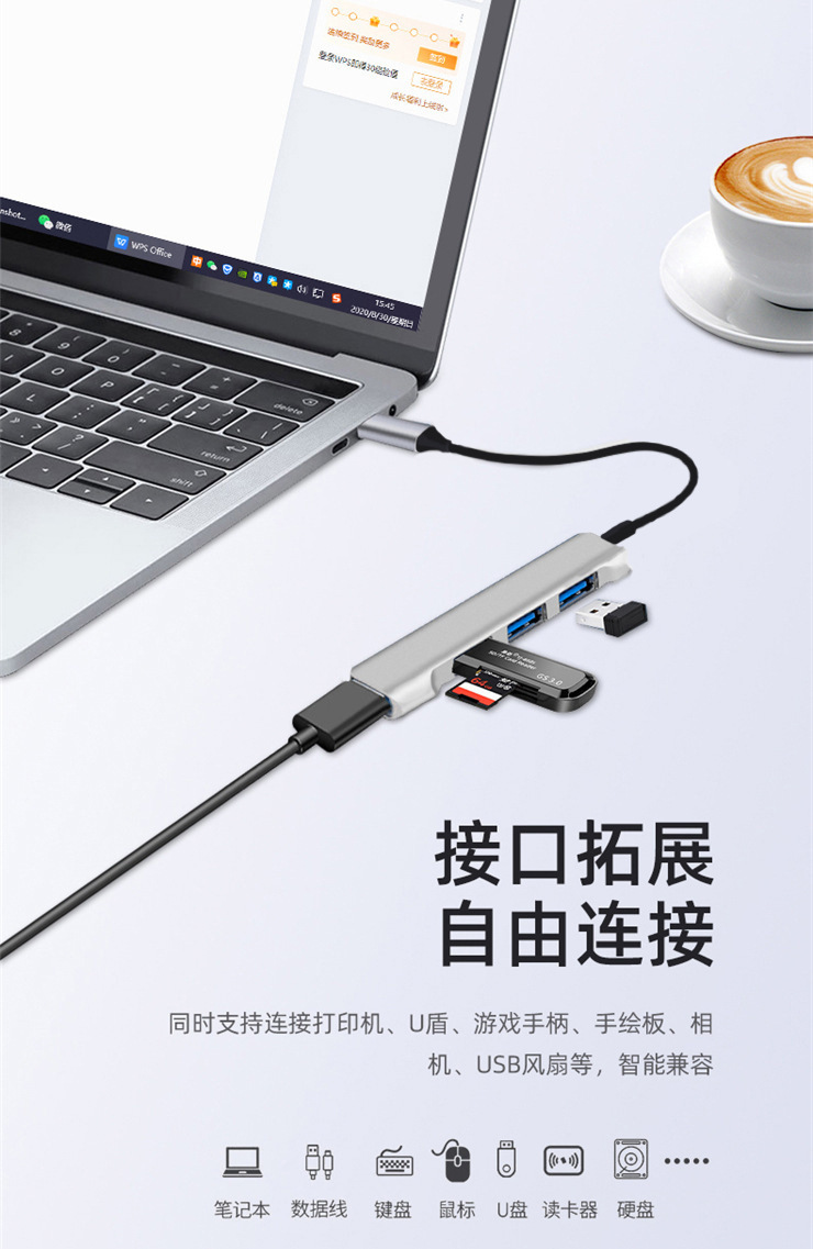 유형 c otg 확장 도크 usb3.0 허브 익스텐더 4-in -1 분할 허브 노트북 도킹 스테이션스토어 가기