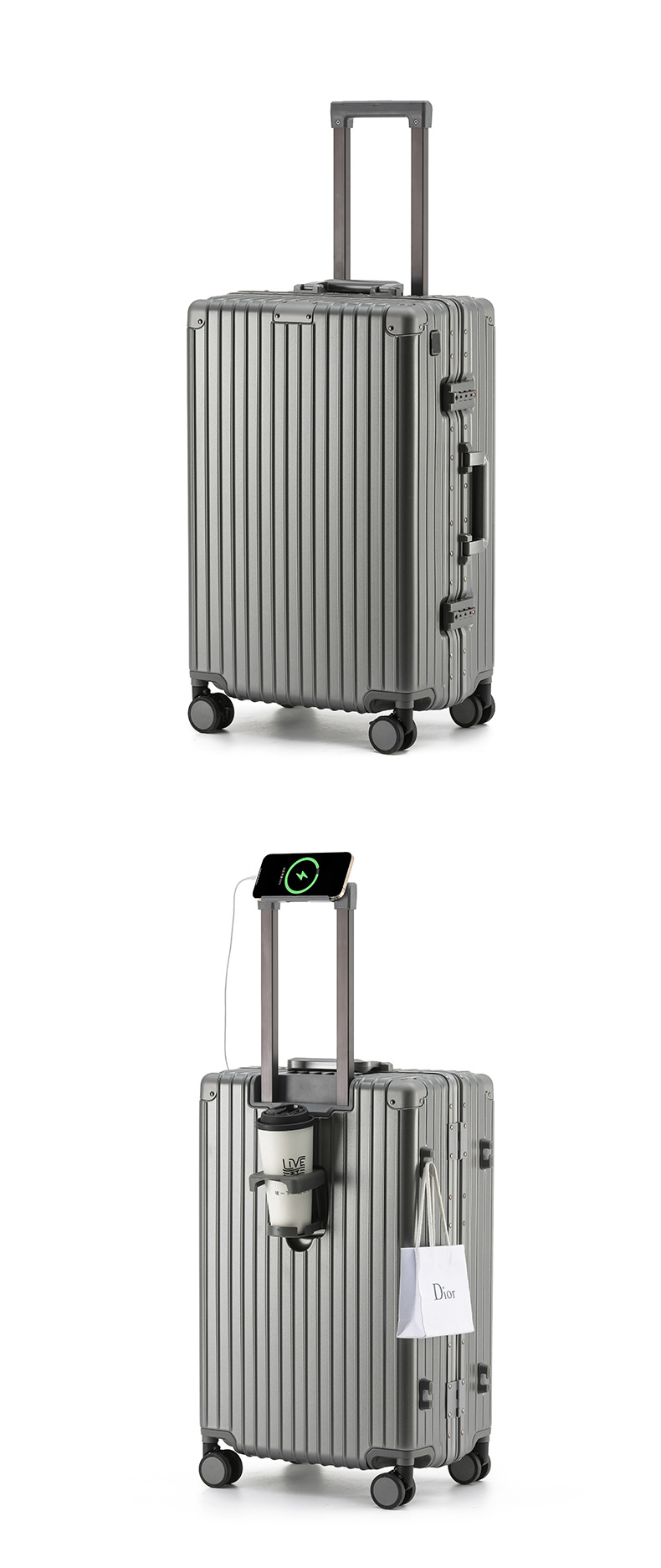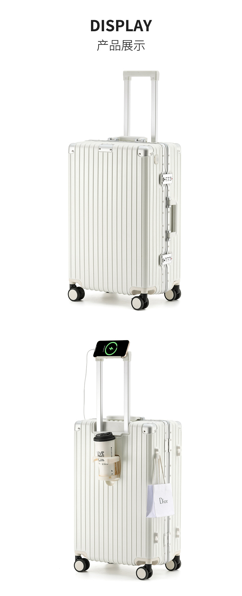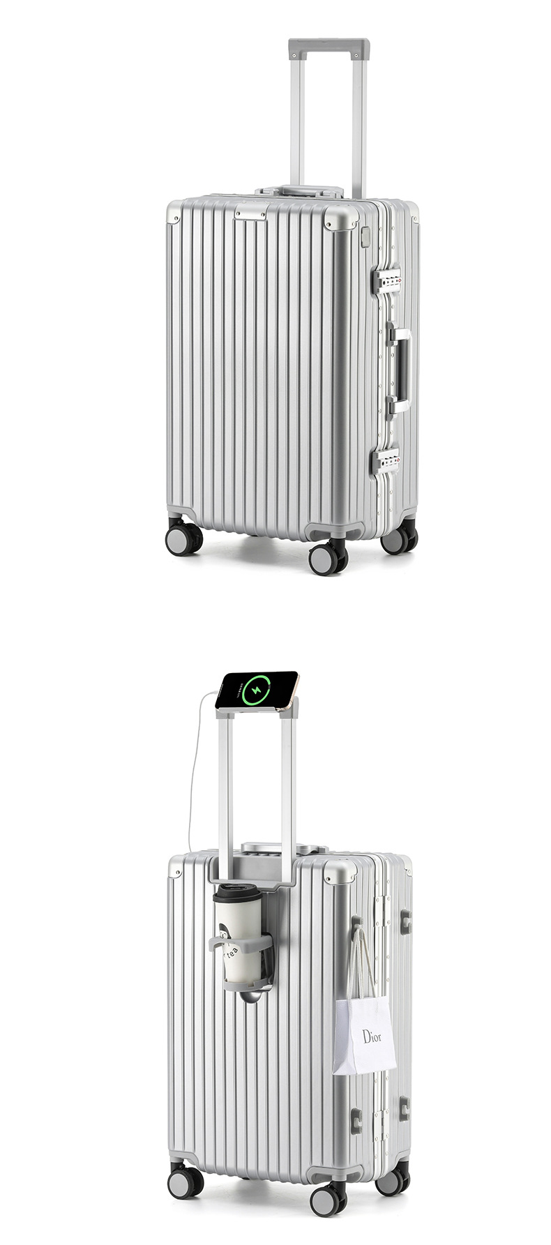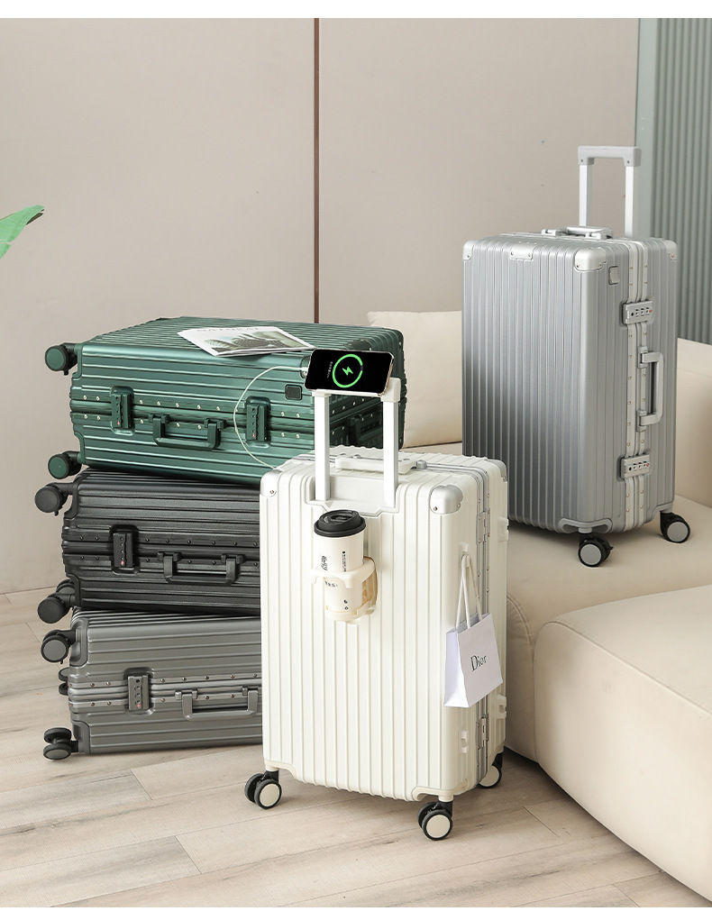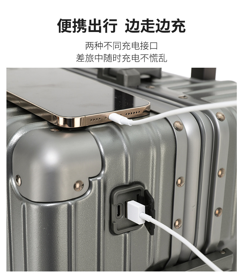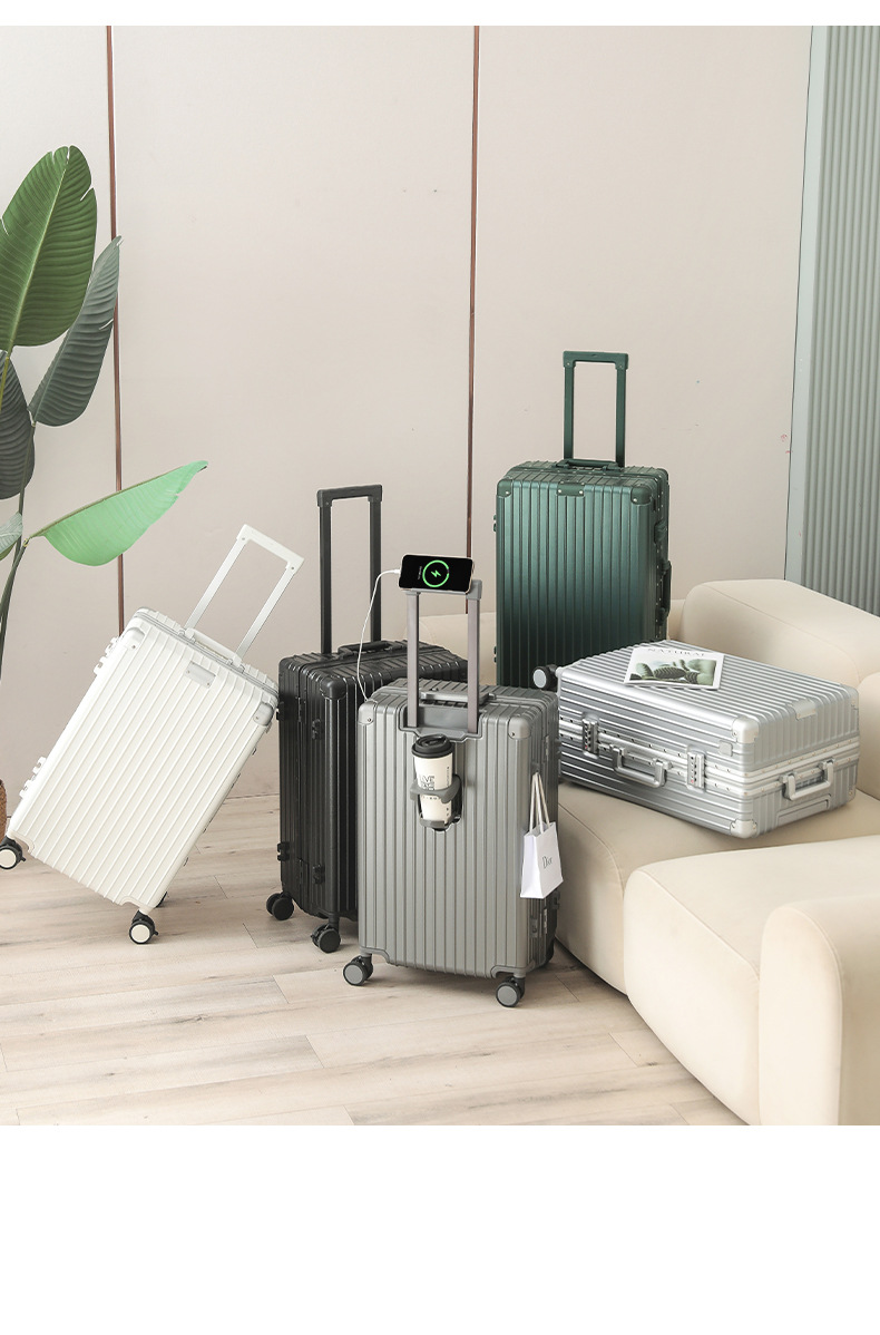 다기능 알루미늄 프레임 트롤리 케이스 USB 듀얼 인터페이스 충전 범용 휠 가방 세관 암호 잠금 수하물