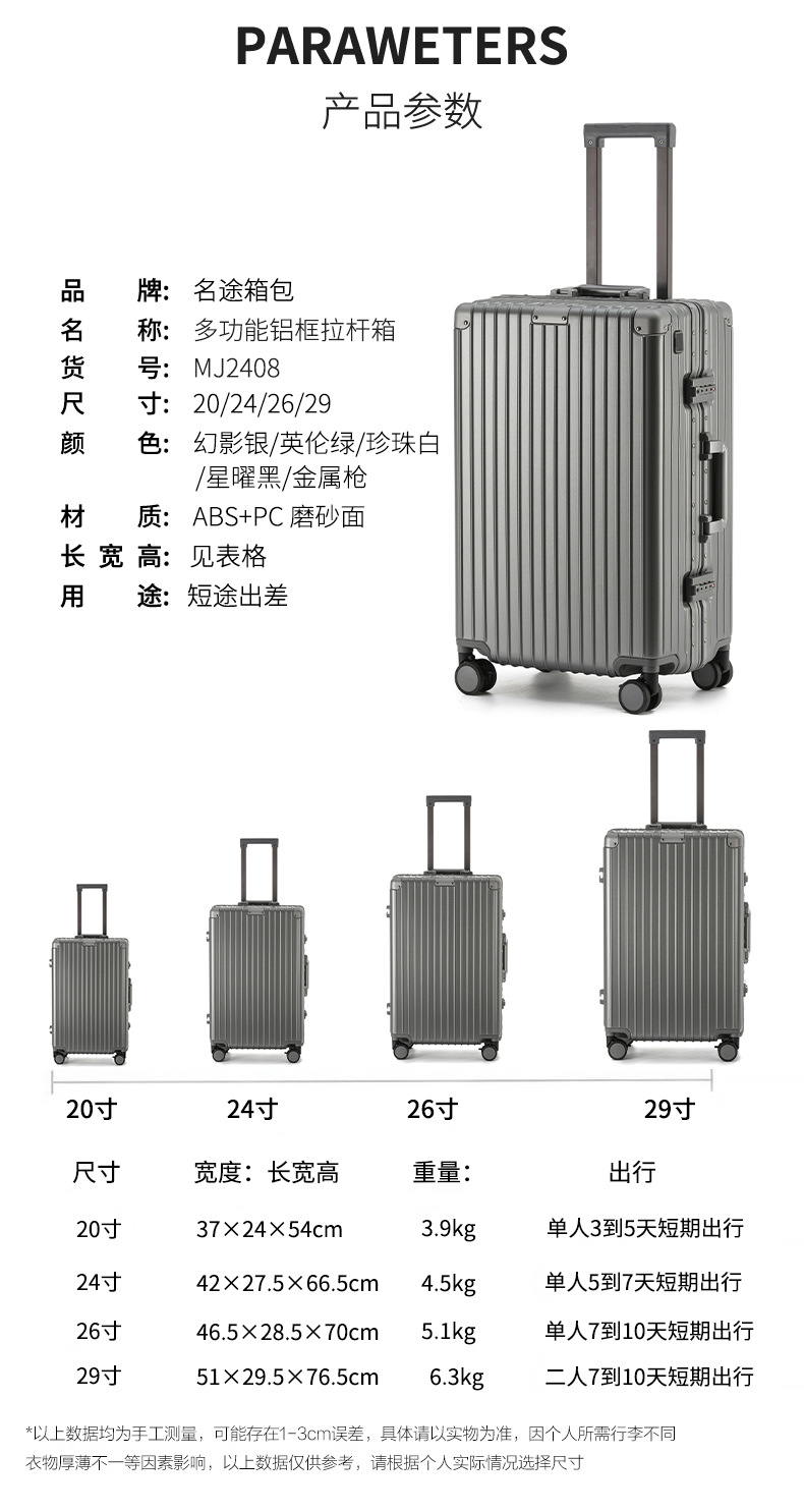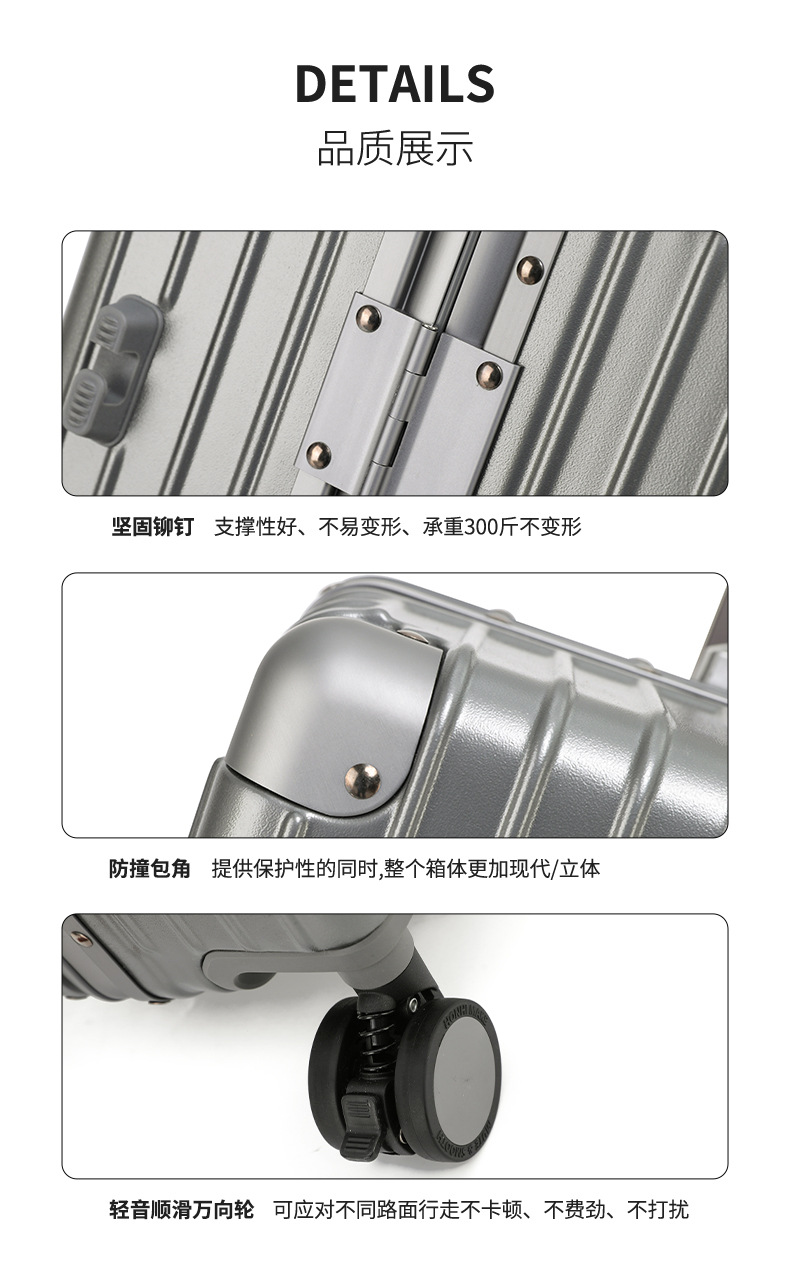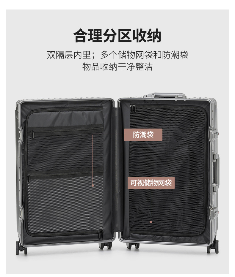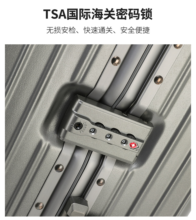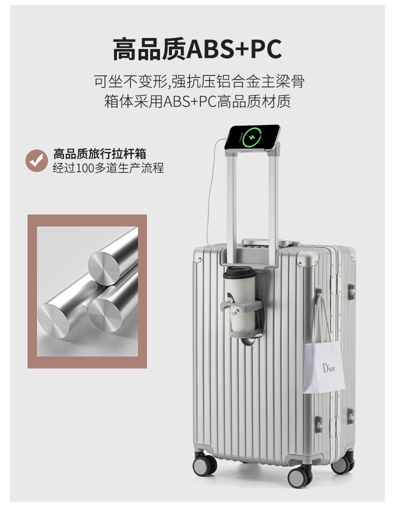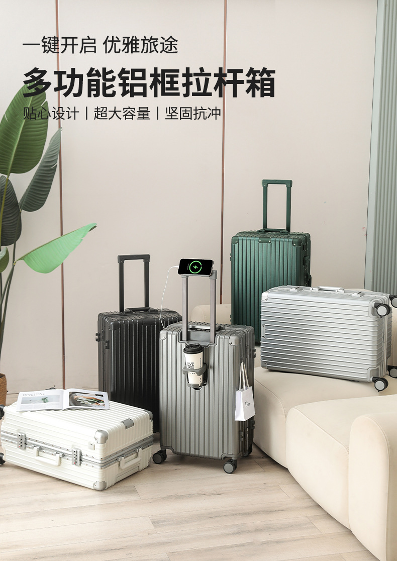 다기능 알루미늄 프레임 트롤리 케이스 USB 듀얼 인터페이스 충전 범용 휠 가방 세관 암호 잠금 수하물