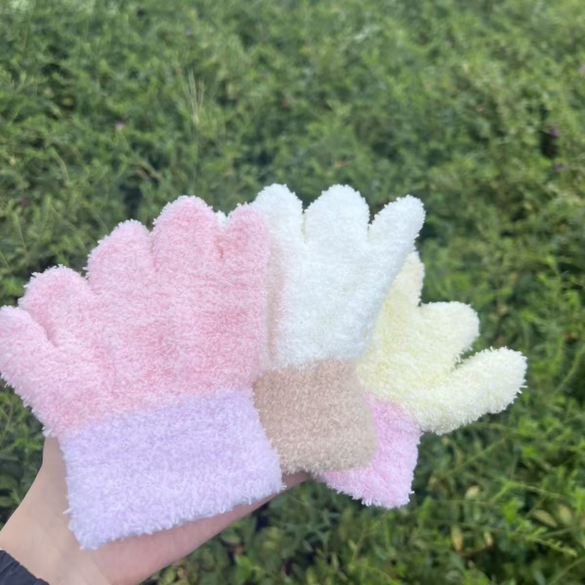 어린이 장갑 겨울 봉제 장갑 소녀 산호 양털 5 손가락 따뜻한 부드러운 귀여운 아기 사탕 컬러 장갑