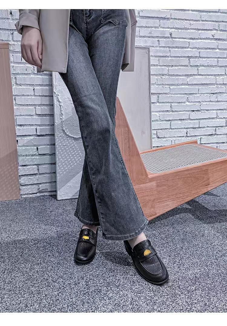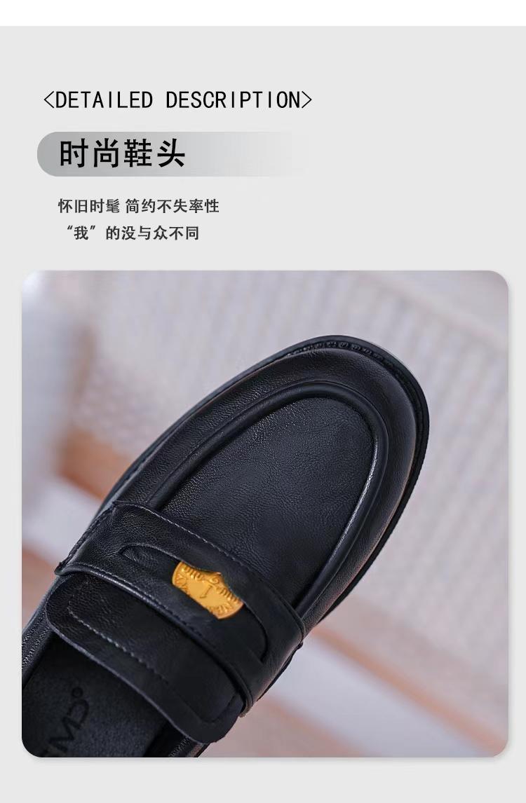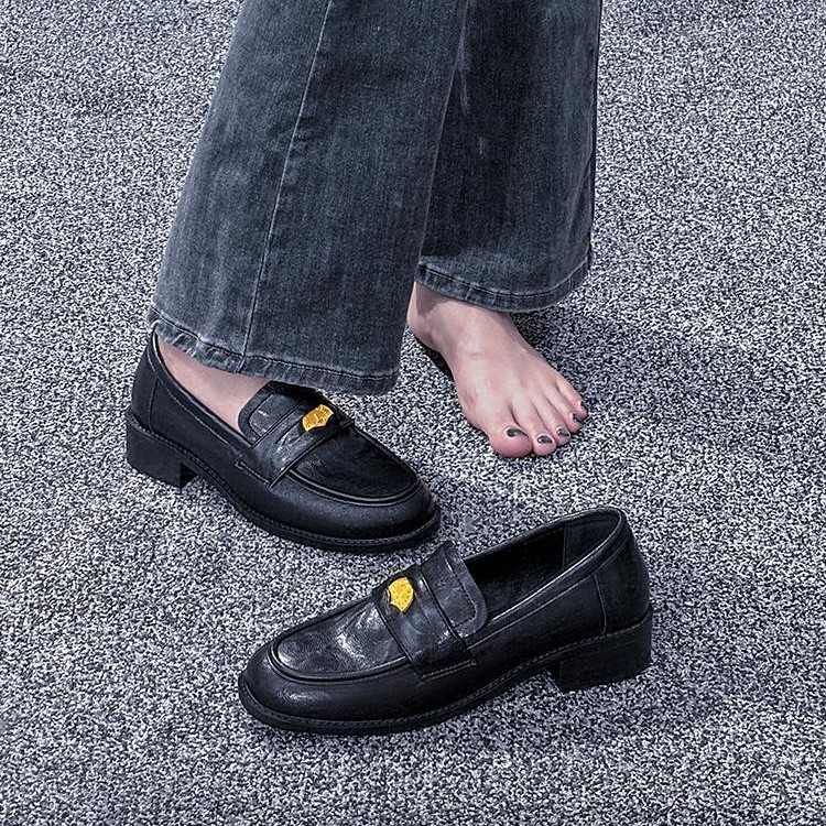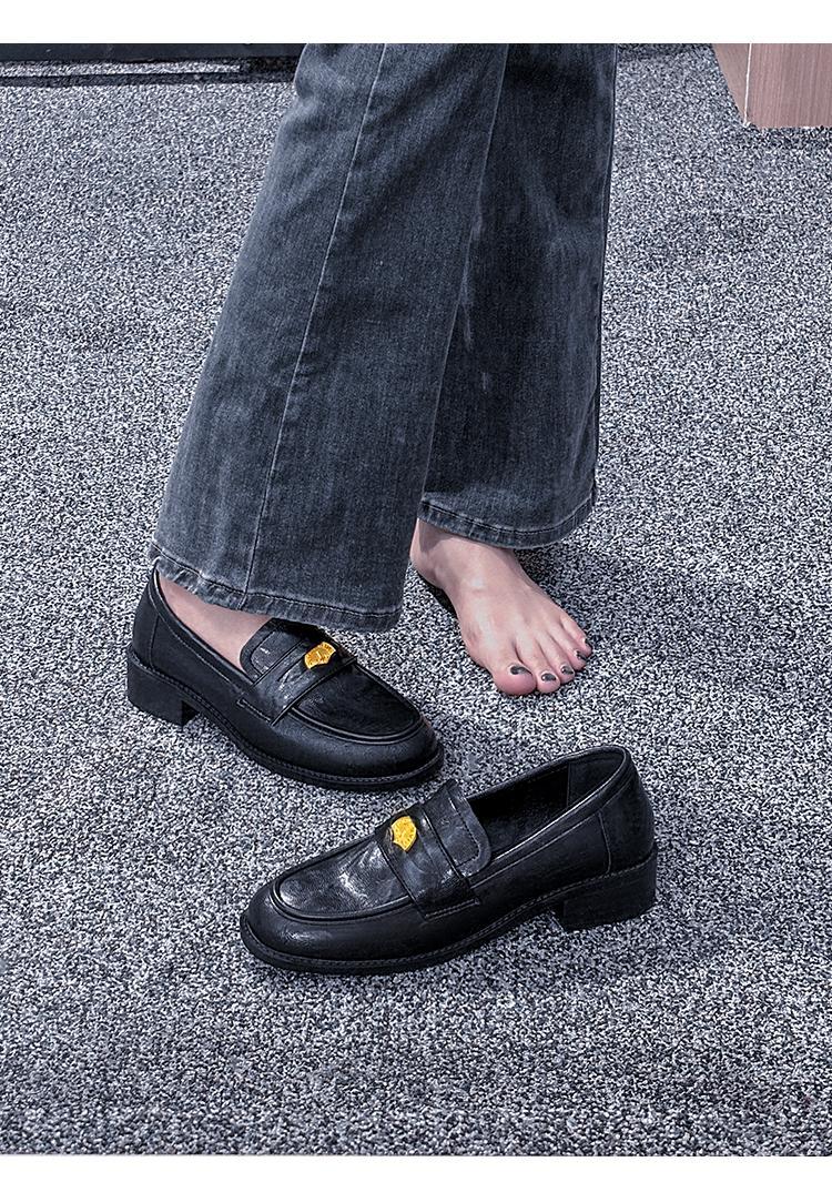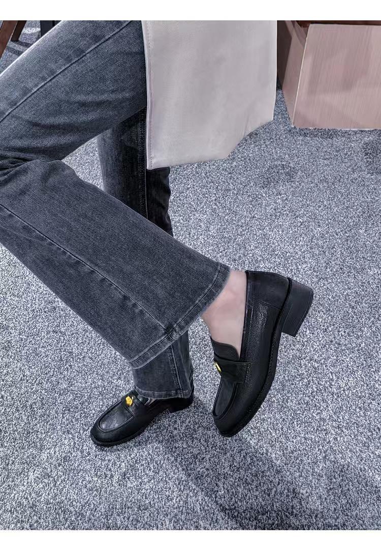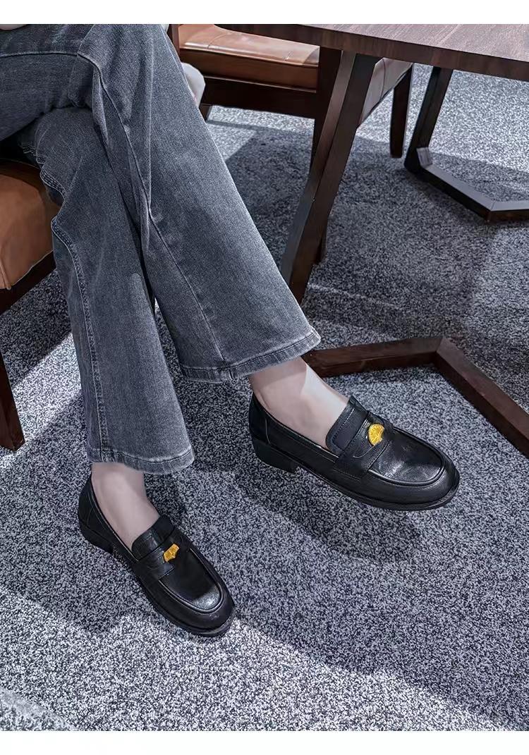 정품 가죽 레트로 코인 로퍼 여성 2024 봄 새로운 영국 올 매치 블랙 작은 가죽 신발 여성 싱글 레이어 신발스토어 가기