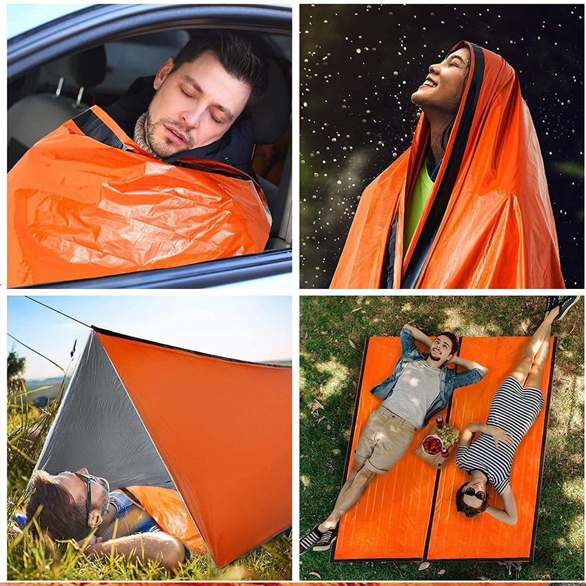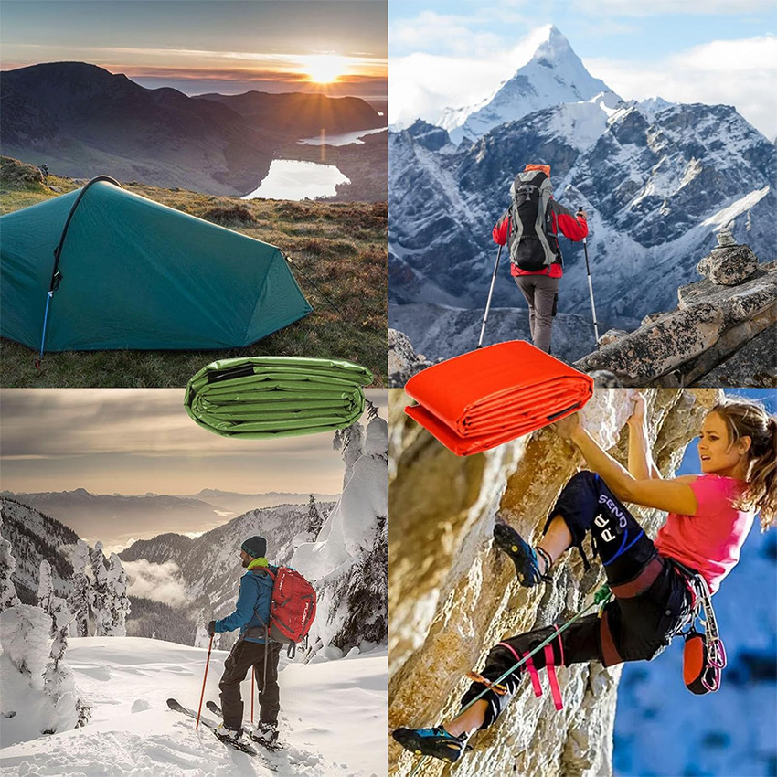 3.急救颜色橙色,更容易让营救的人员发现,实为野外求生装备之一,在睡袋里加一层急救毯更能提高保温能力,对保证睡眠温度大有好处。