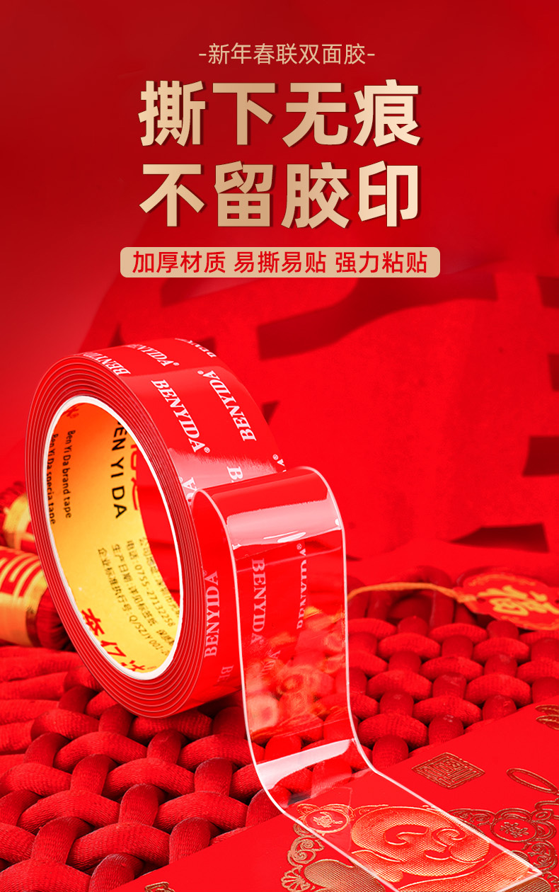 봄 대련용 특수 트레이스리스 고점도 양면 테이프, 고온 방지 대련, 강력한 트레이스리스 테이프, 나노 양면 테이프