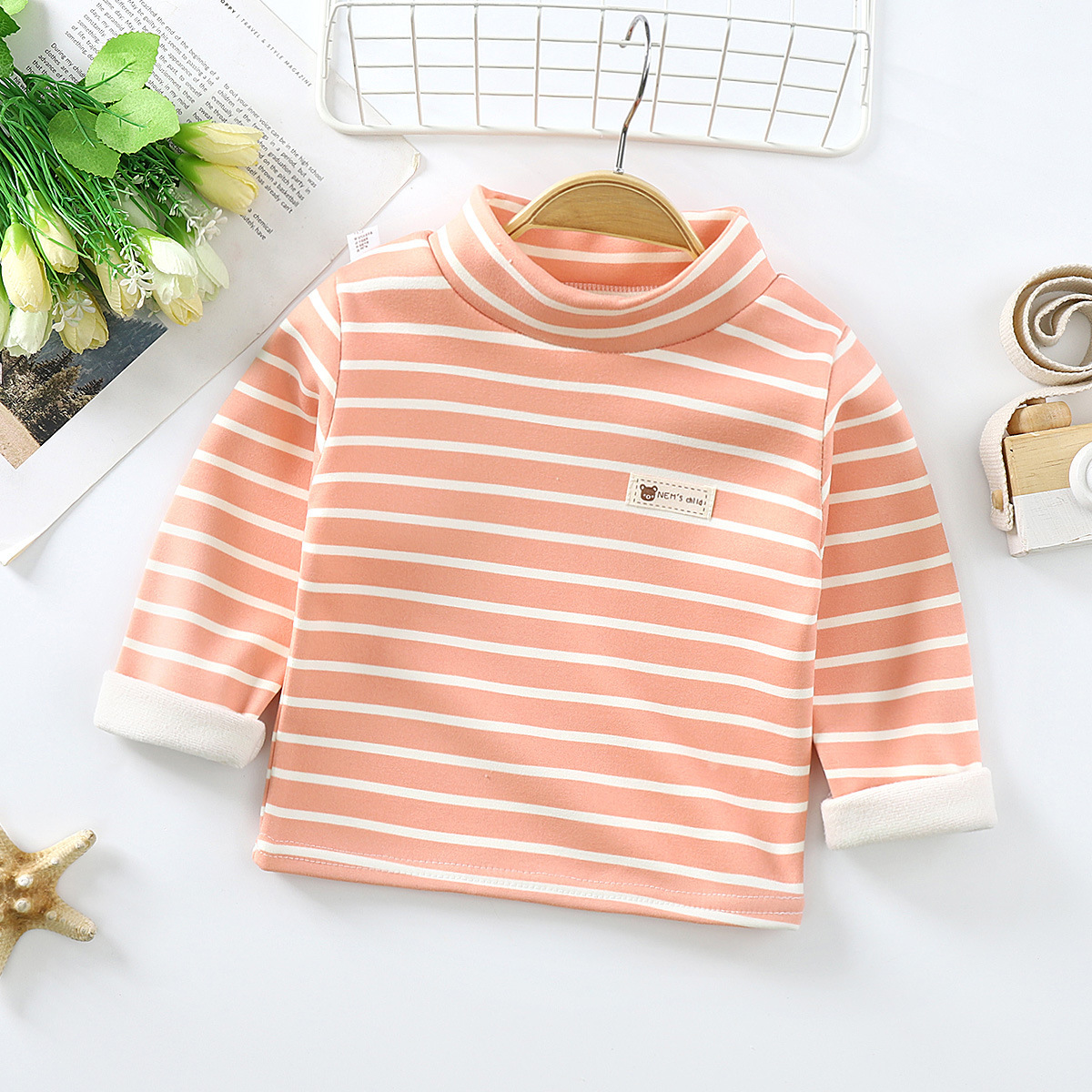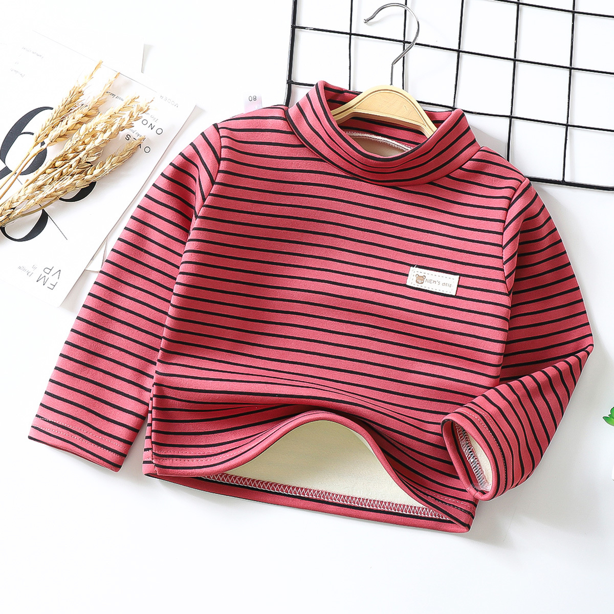 어린이 봄과 가을 따뜻한 옷 높은 칼라 기모 소년 소녀를위한 두꺼운 아동베이스 셔츠 가을 옷 아기 속옷스토어 가기