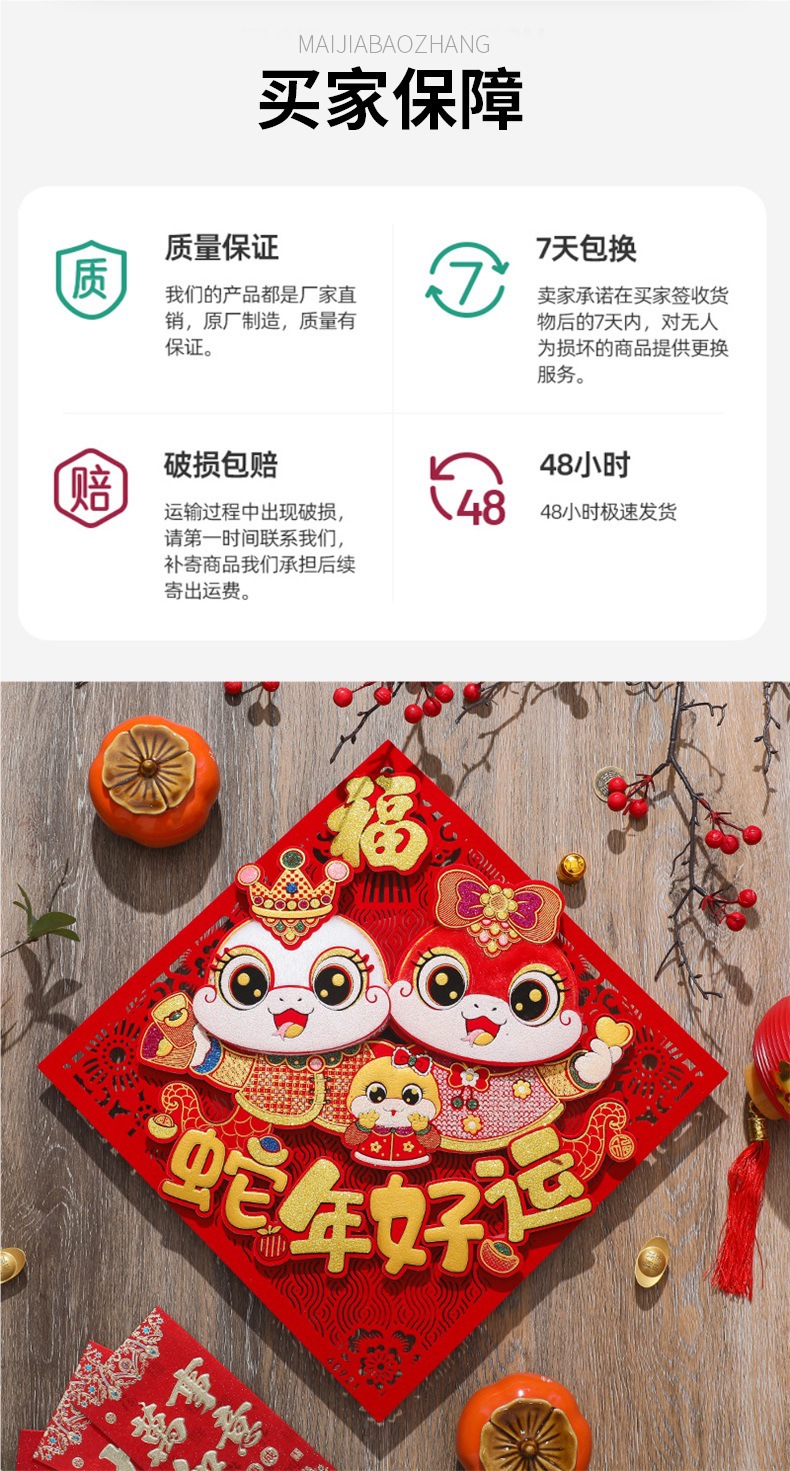 스네이크의 프로모션 2025 조디악 년 스테레오 푸 워드 도어 스티커 스테레오 펠트 배치 검미 드 신년 봄 축제 장식 무료 배송