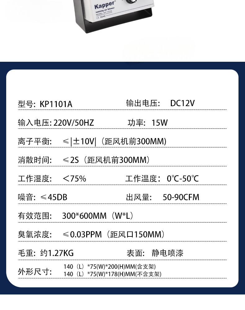 독일 Kapper 데스크탑 이온 팬 KP1001A 산업 사용을위한 정전기 제거기 이온 팬스토어 가기