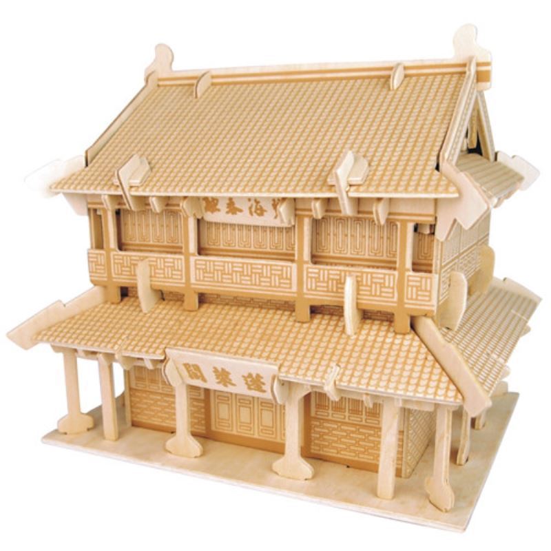 중국 고대 건축 모르타스 및 테논 빌딩 블록 노란색 크레인 타워 모델 고대 건축 건물 블록 나무 조립 장난감 교육 원조스토어 가기