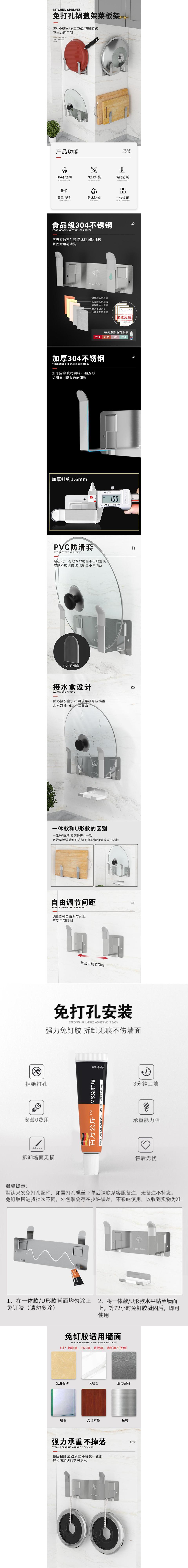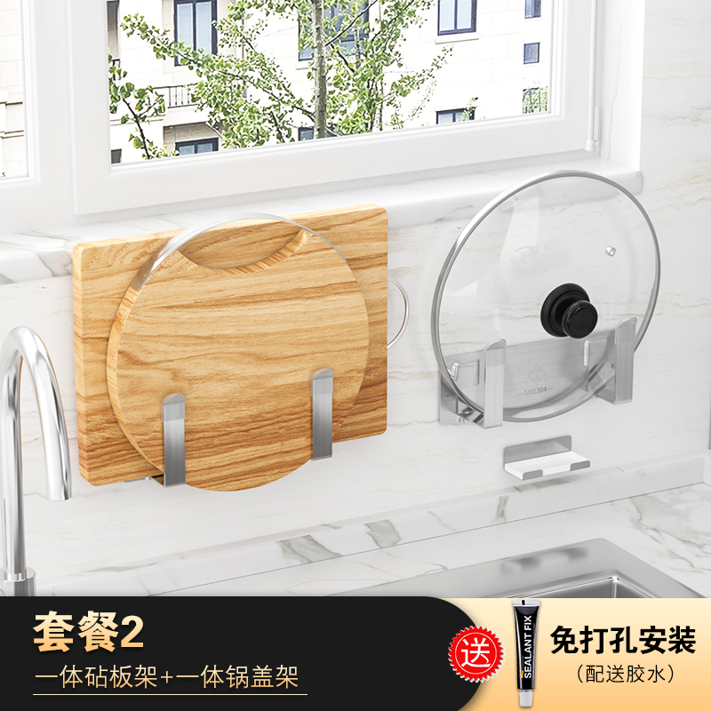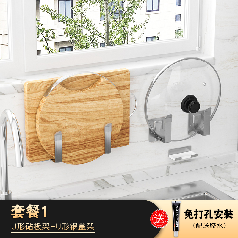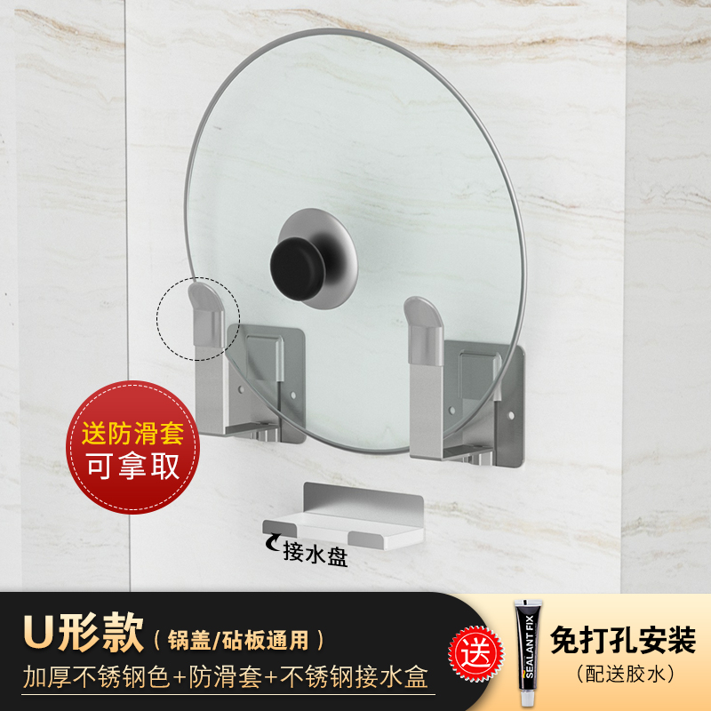 구멍없는 스테인레스 스틸 도마 랙 도마 보관 벽 냄비 뚜껑 랙 주방 용품 벽걸이 브래킷