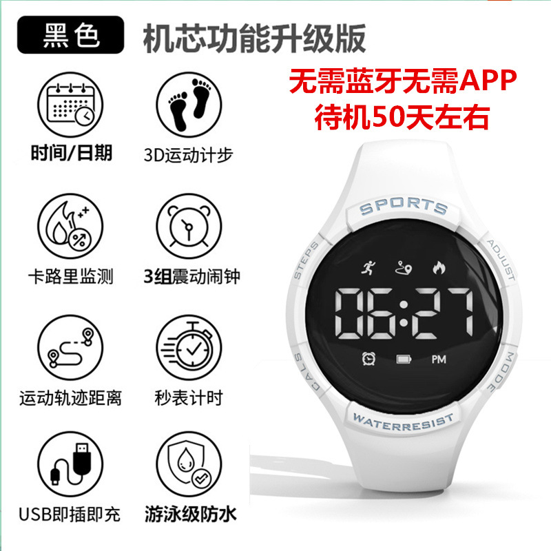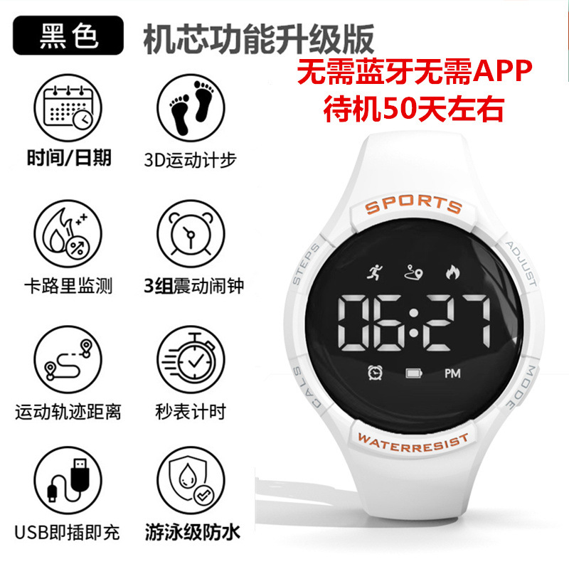 • 순수한 흰색 수영 등급 방수 Bluetooth 연결 없음 3D 걸음 수 계산/칼로리/3 세트 알람 시계/수영 방수