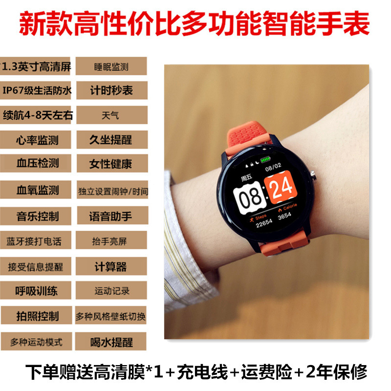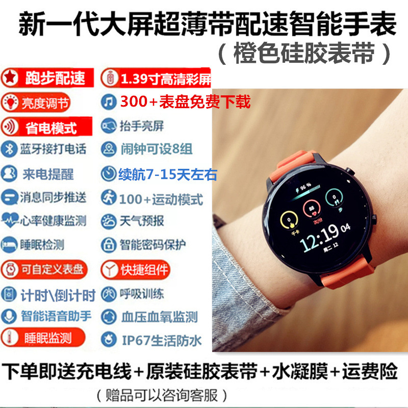 • 2세대 주황색 실리콘의 고급 버전( 1.39inch HD 대형 화면/스포츠 속도 구성/메시지 푸시/음성 도우미/건강 모니터링)