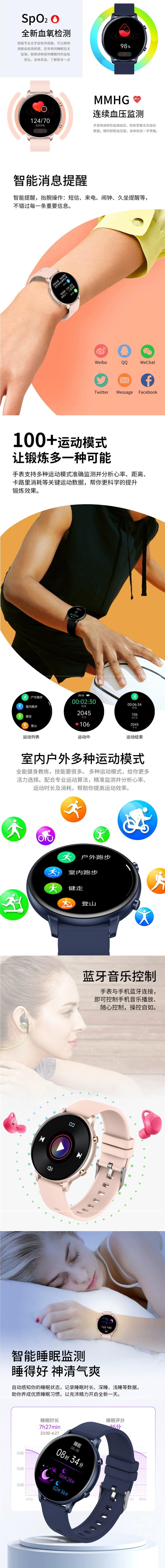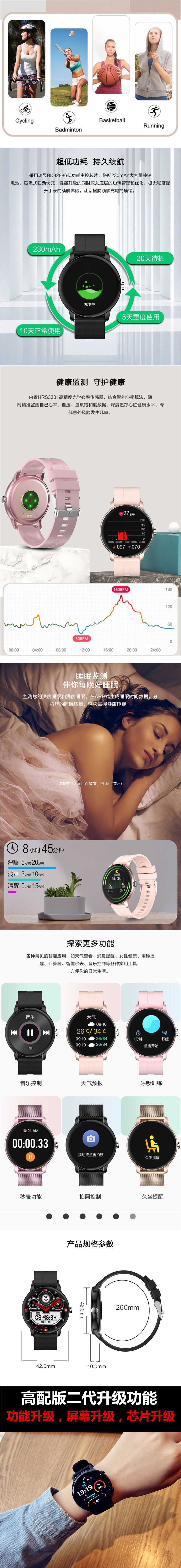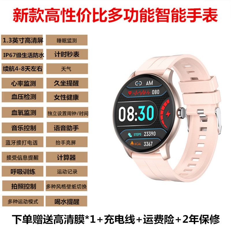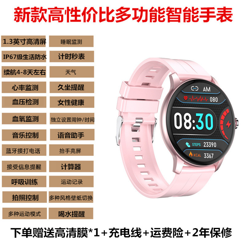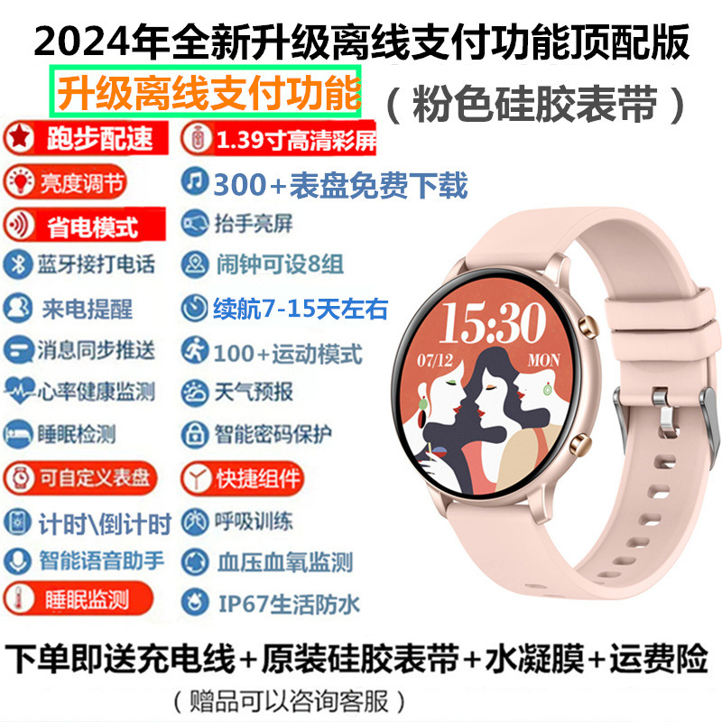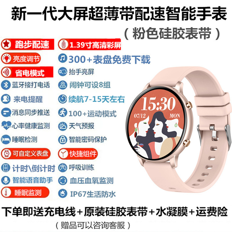 • 2세대 핑크 실리콘의 고급 버전( 1.39inch HD 대형 화면/스포츠 속도 구성/메시지 푸시/음성 도우미/건강 모니터링)
