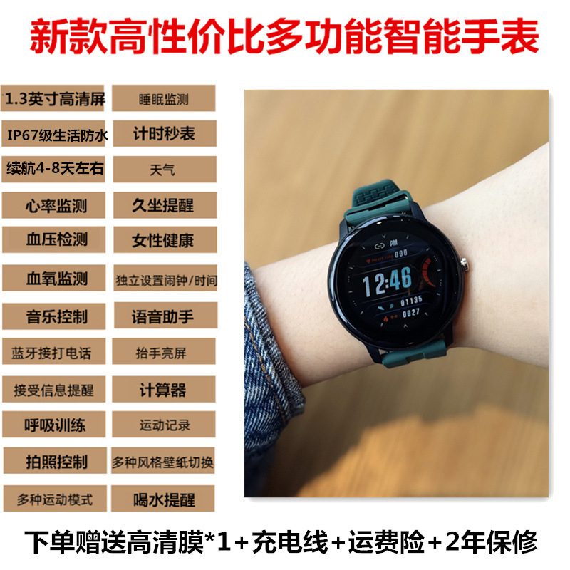 • 2세대 블루 실리콘의 고급 버전( 1.39inch HD 대형 화면/스포츠 속도 구성/메시지 푸시/음성 도우미/건강 모니터링)