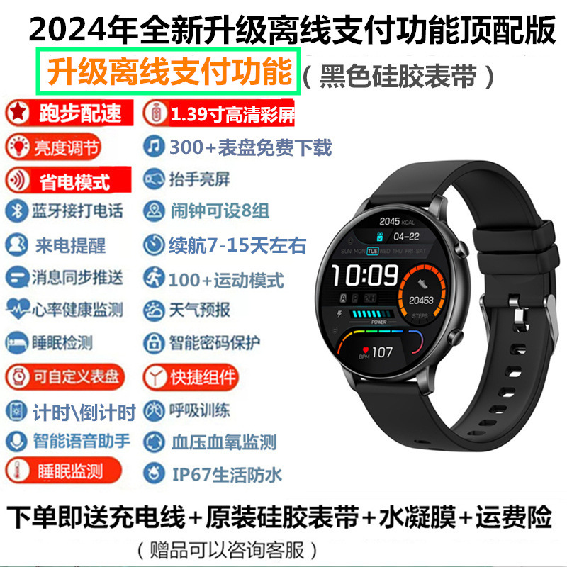 • GT 상위 버전에는 오프라인 결제 블랙 실리콘이 추가되었습니다(오프라인 결제/스포츠 속도/HD 통화/음성 도우미/메시지 보기).