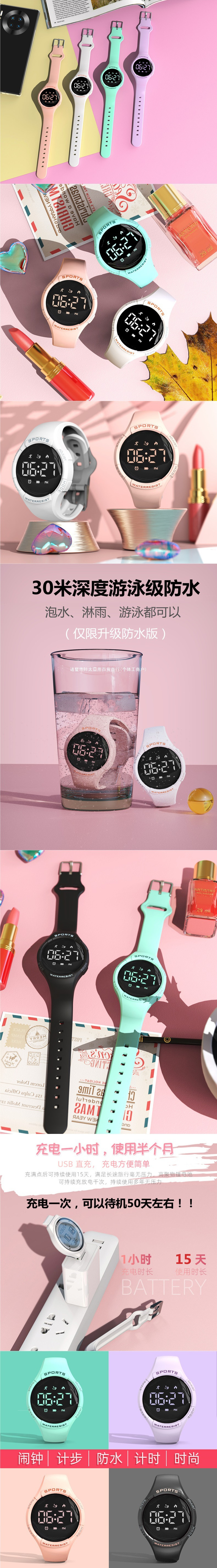 • 사쿠라 핑크 수영 등급 방수 블루투스 연결 없음 버전 3D 걸음 수 계산/칼로리/3 세트 알람 시계/수영 방수