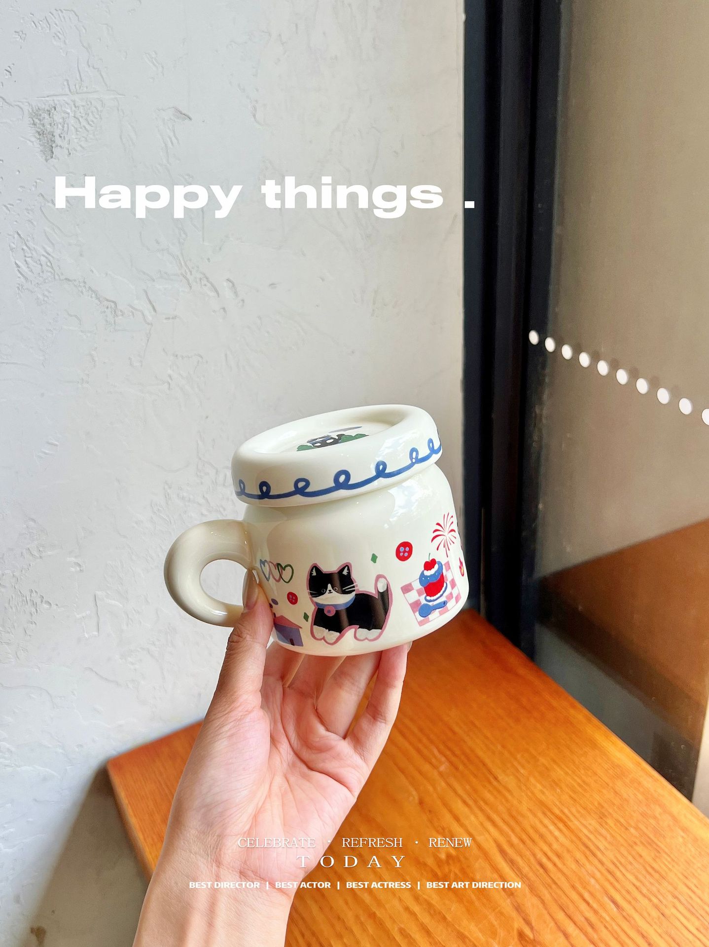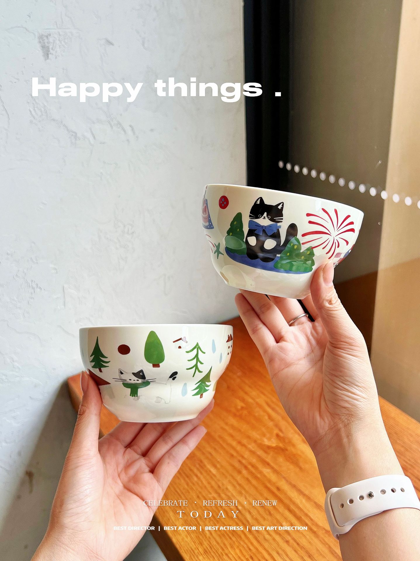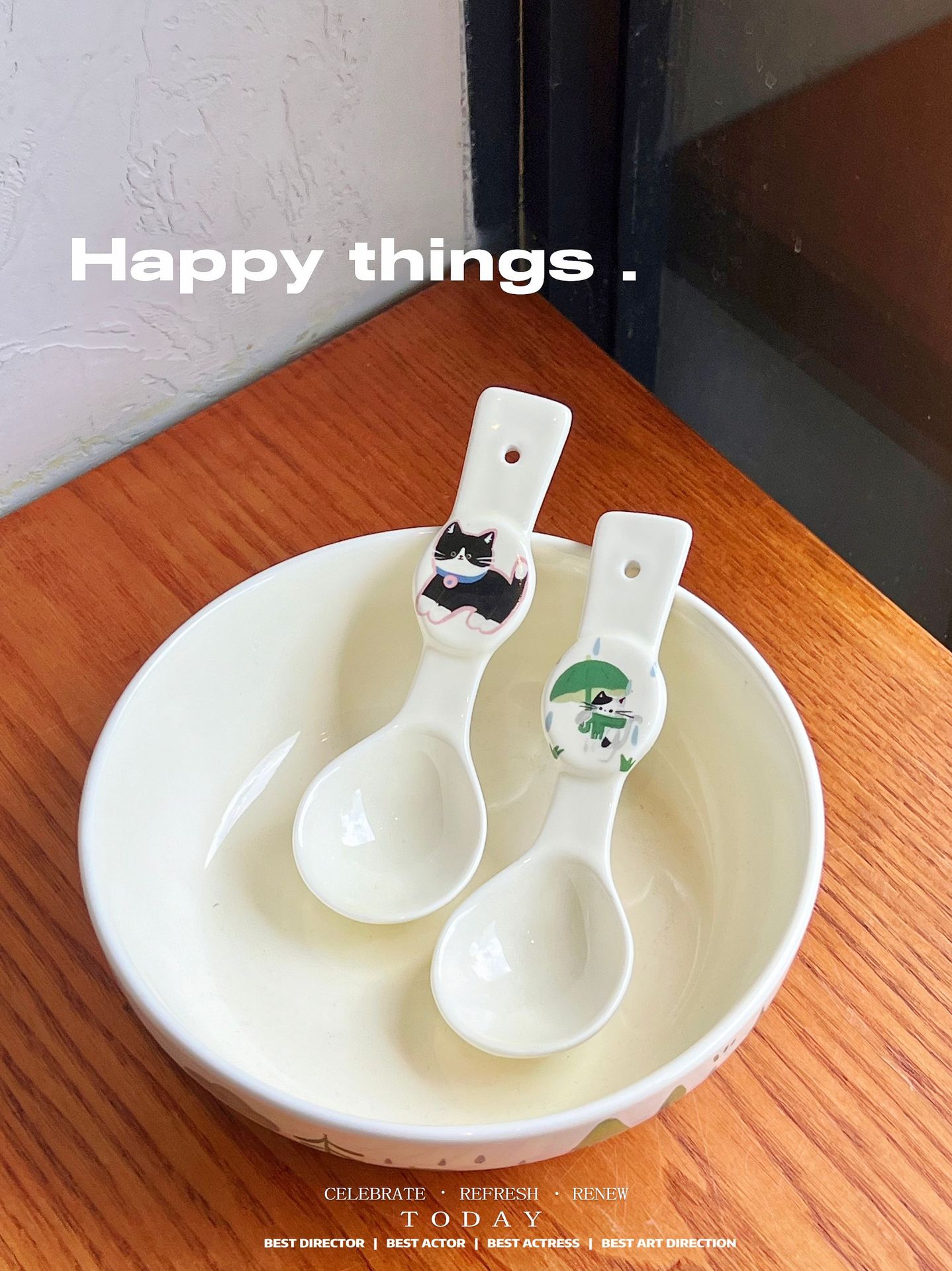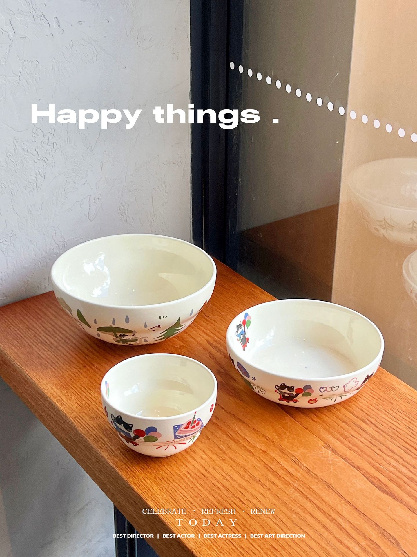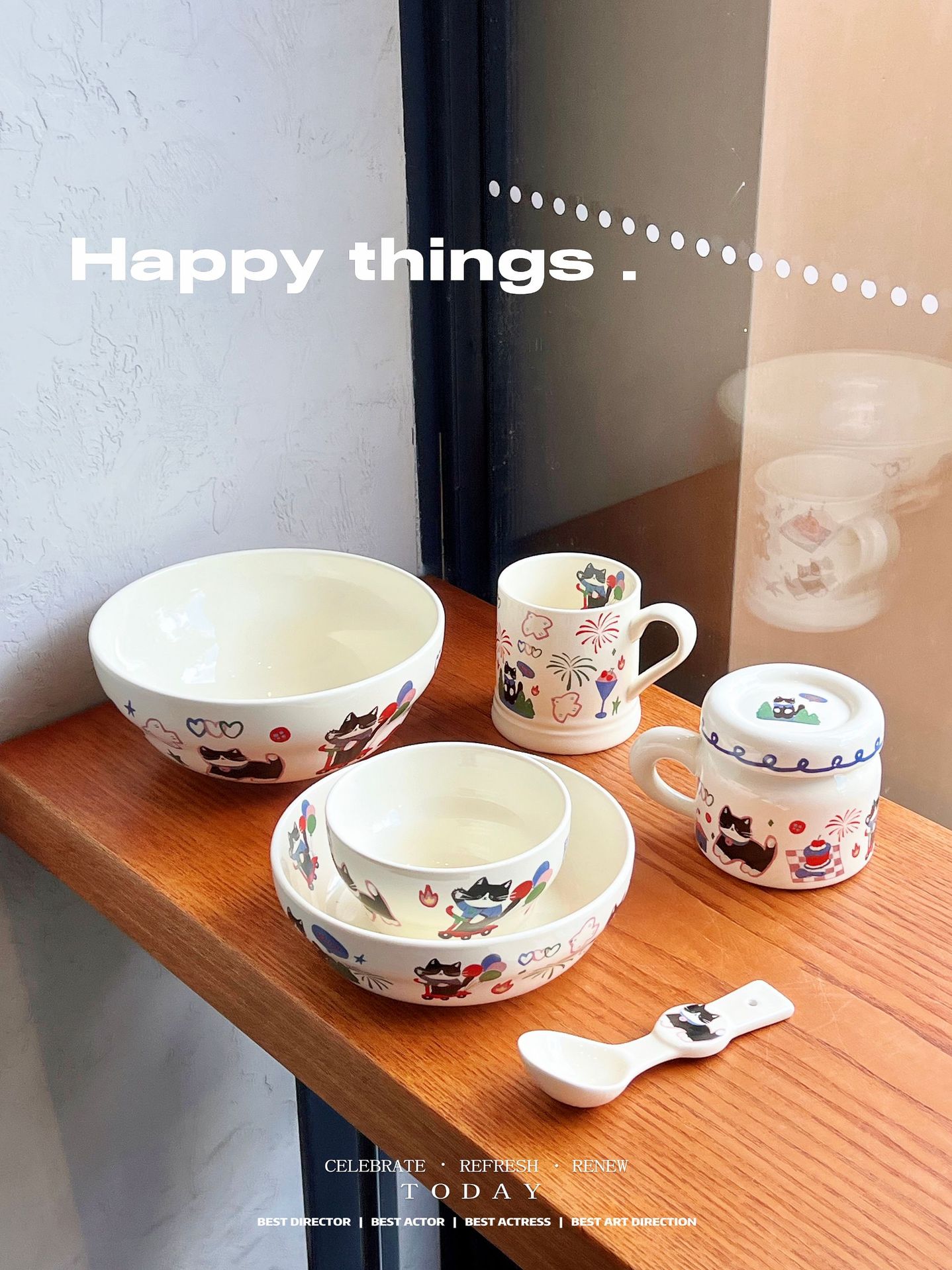 고양이 크림 바람 조롱박 식기 가정용 세라믹 밥 그릇 인터넷 레드 볼 플레이트 높은 아름다움 가치 요리 Carto 그릇