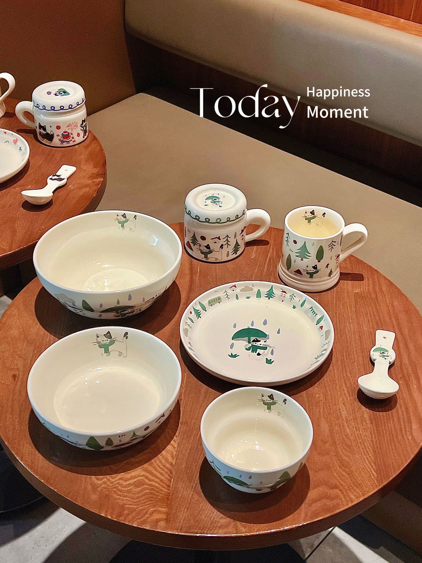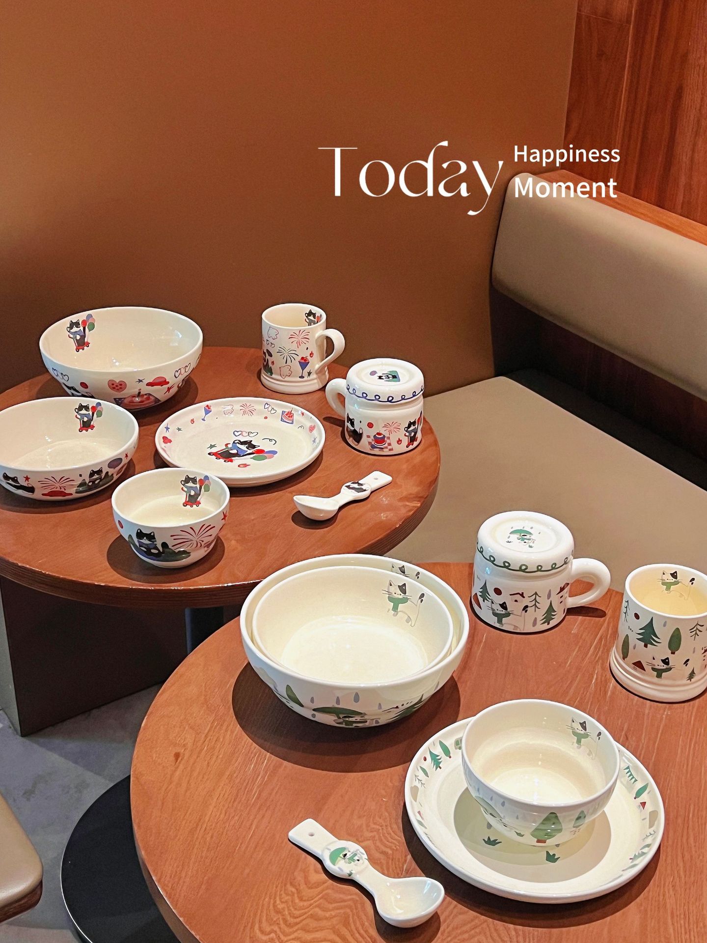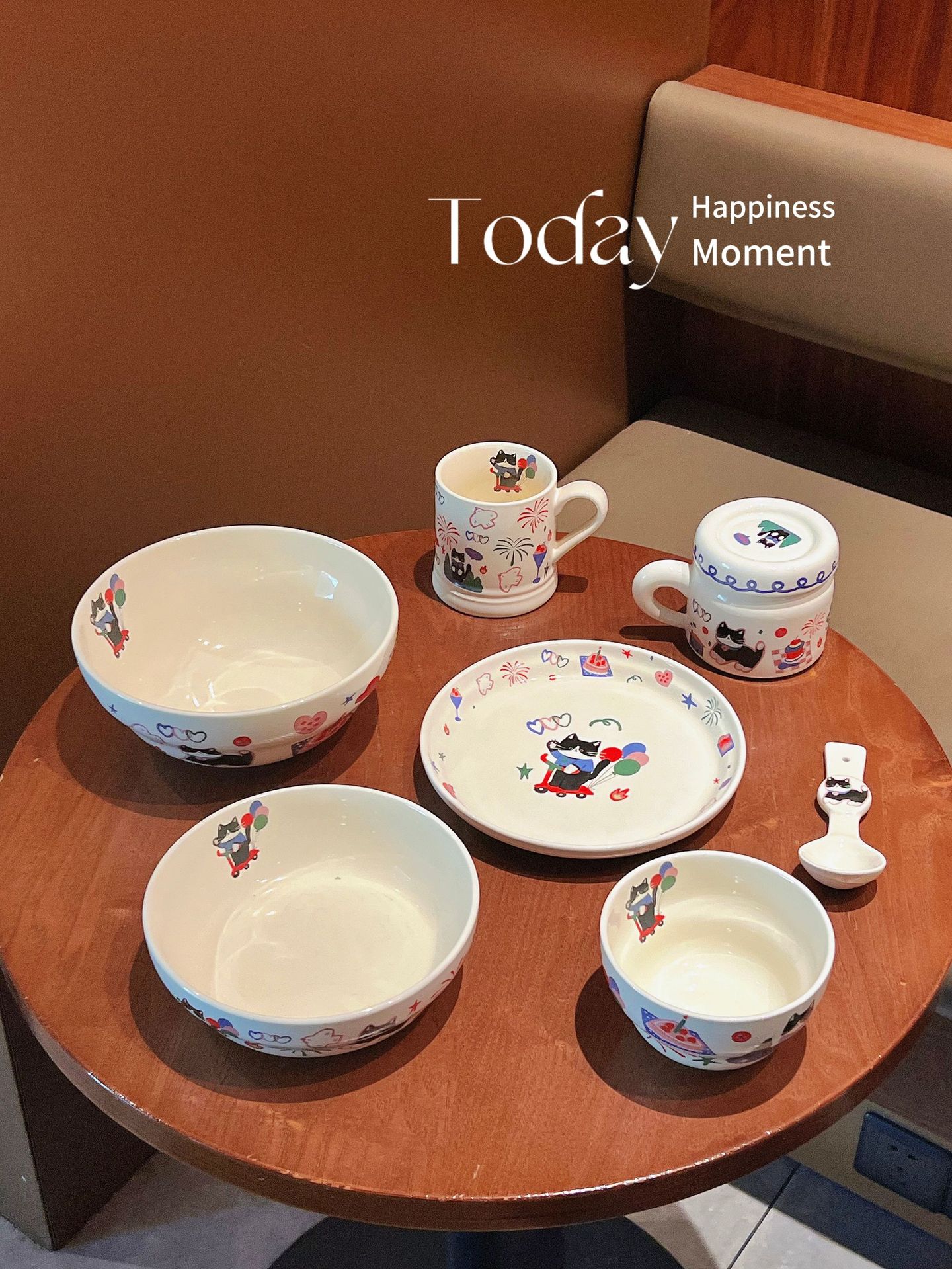 고양이 크림 바람 조롱박 식기 가정용 세라믹 밥 그릇 인터넷 레드 볼 플레이트 높은 아름다움 가치 요리 Carto 그릇스토어 가기