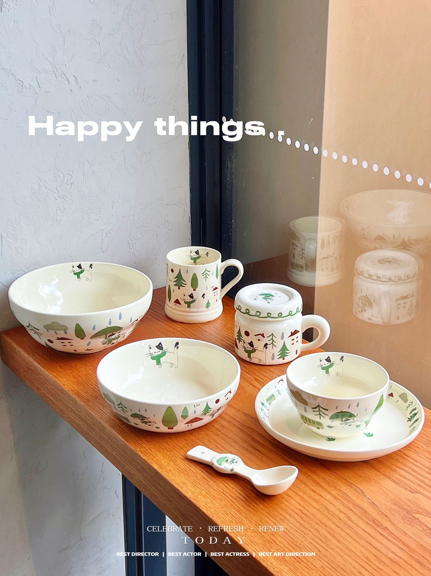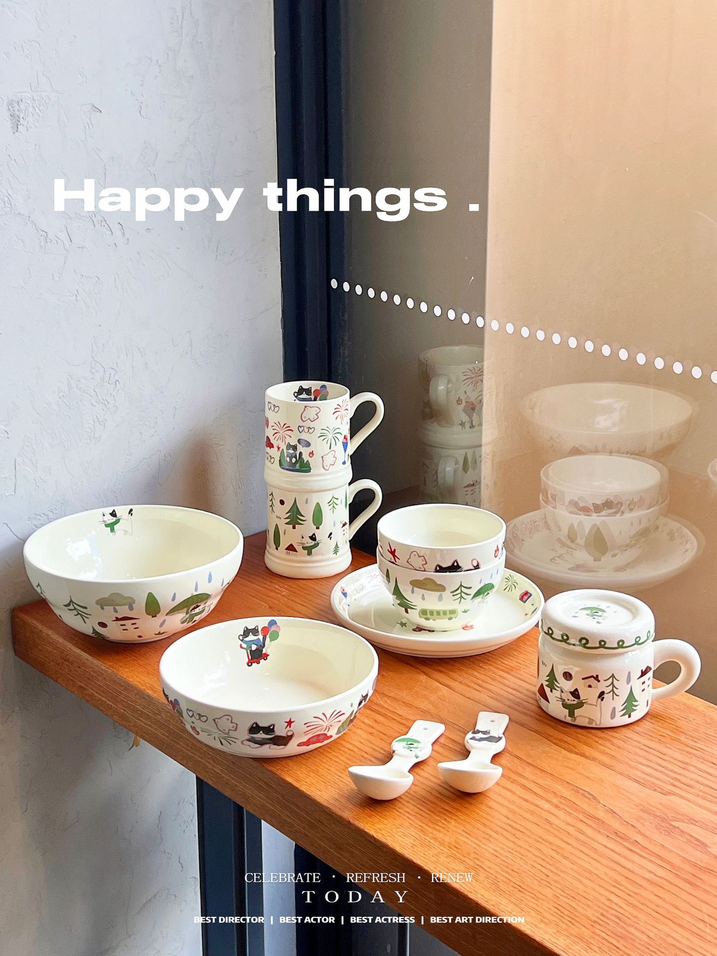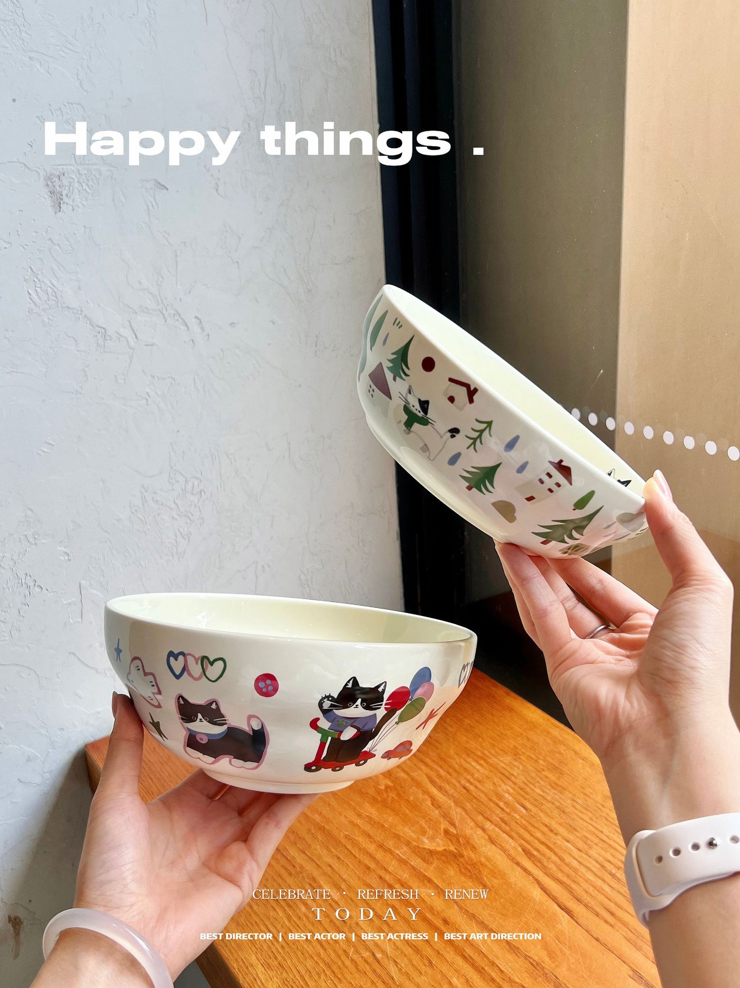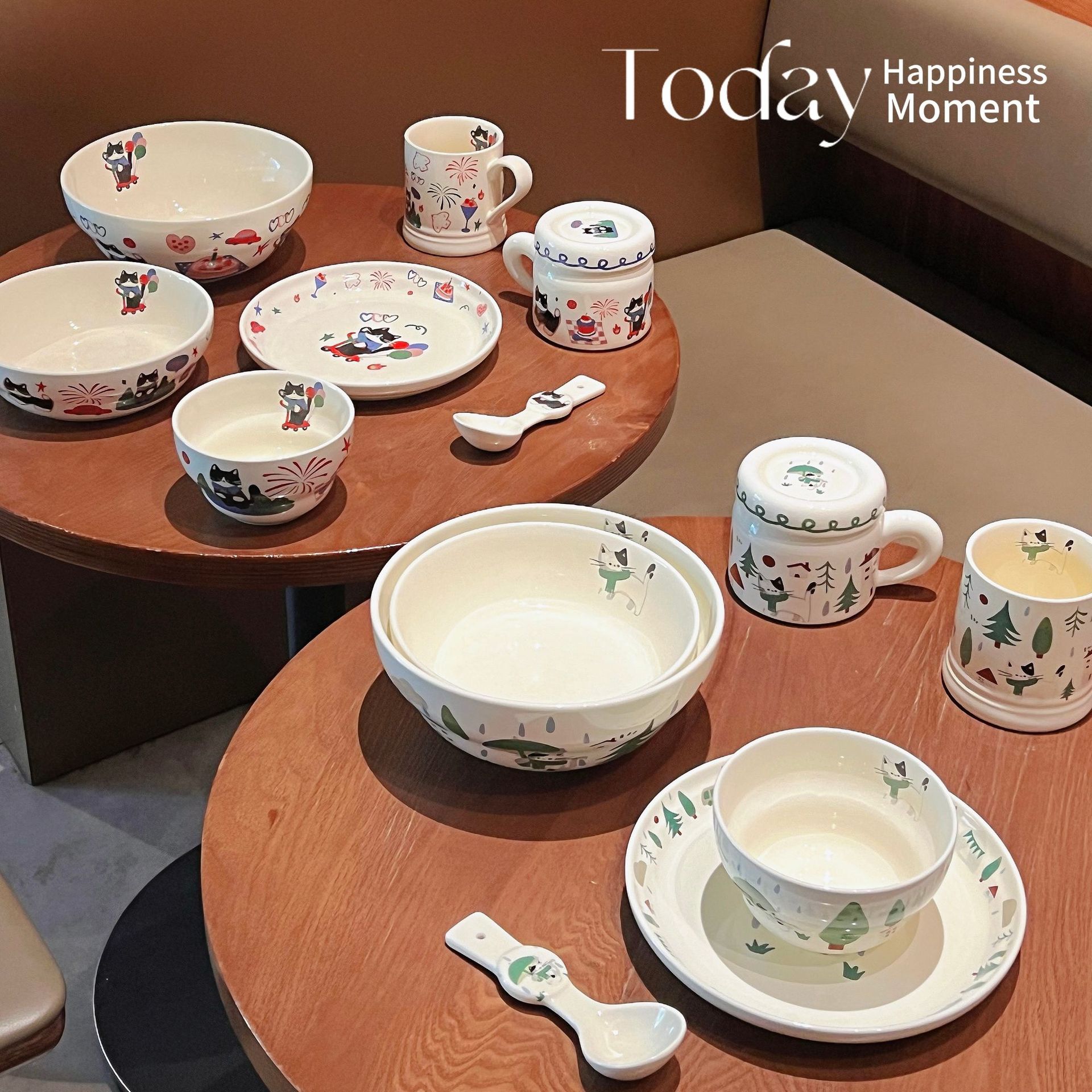 고양이 크림 바람 조롱박 식기 가정용 세라믹 밥 그릇 인터넷 레드 볼 플레이트 높은 아름다움 가치 요리 Carto 그릇스토어 가기