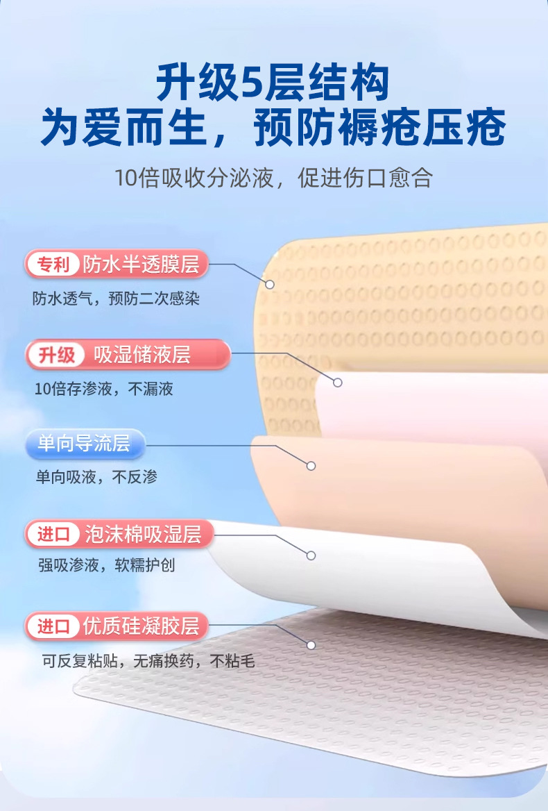 Hengdi 가장자리 압착 자체 접착 폴리우레탄 폼 드레싱 욕창 패치 의료용 누워있는 노인 엉덩이 욕창 패치 감압 패치스토어 가기