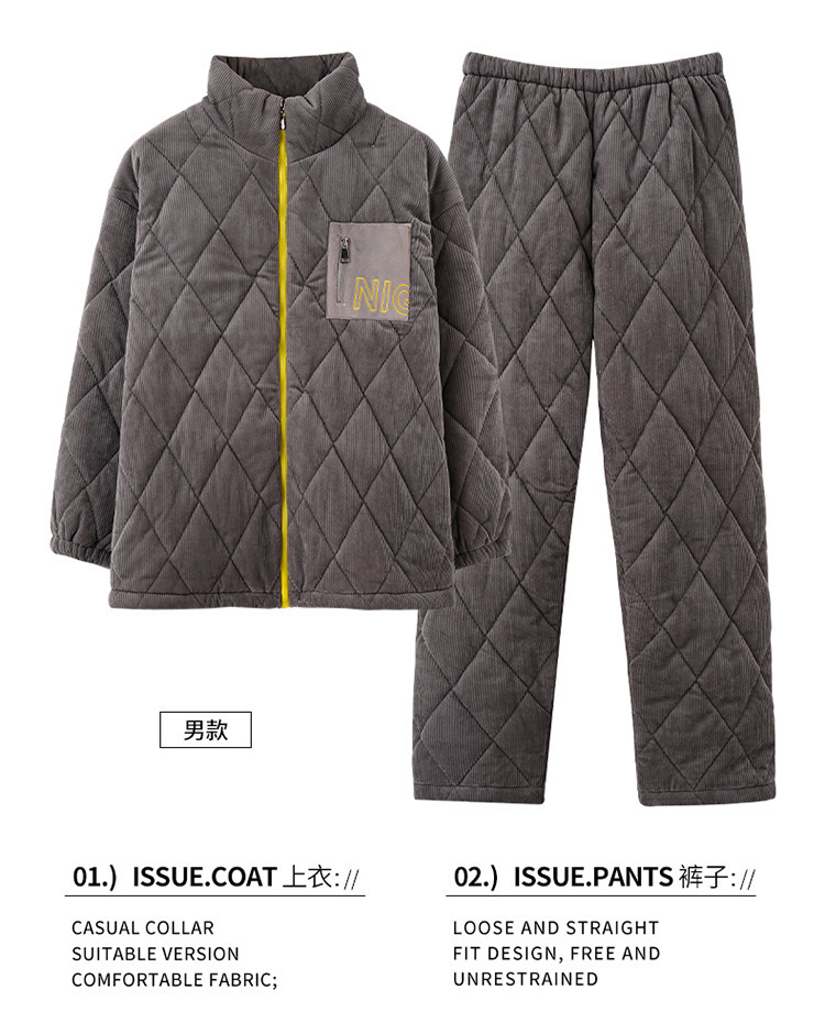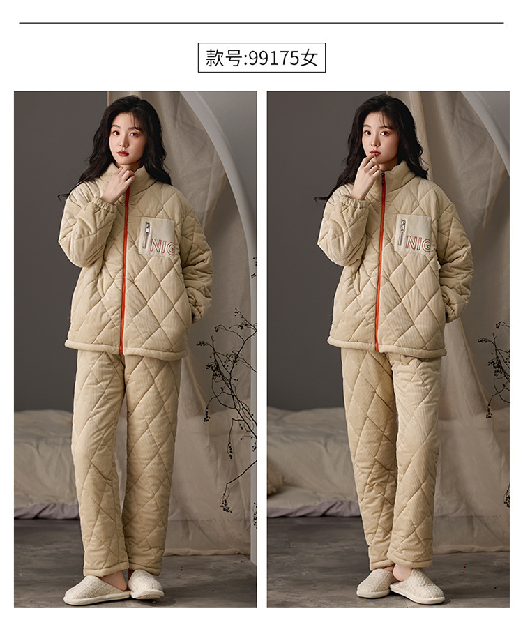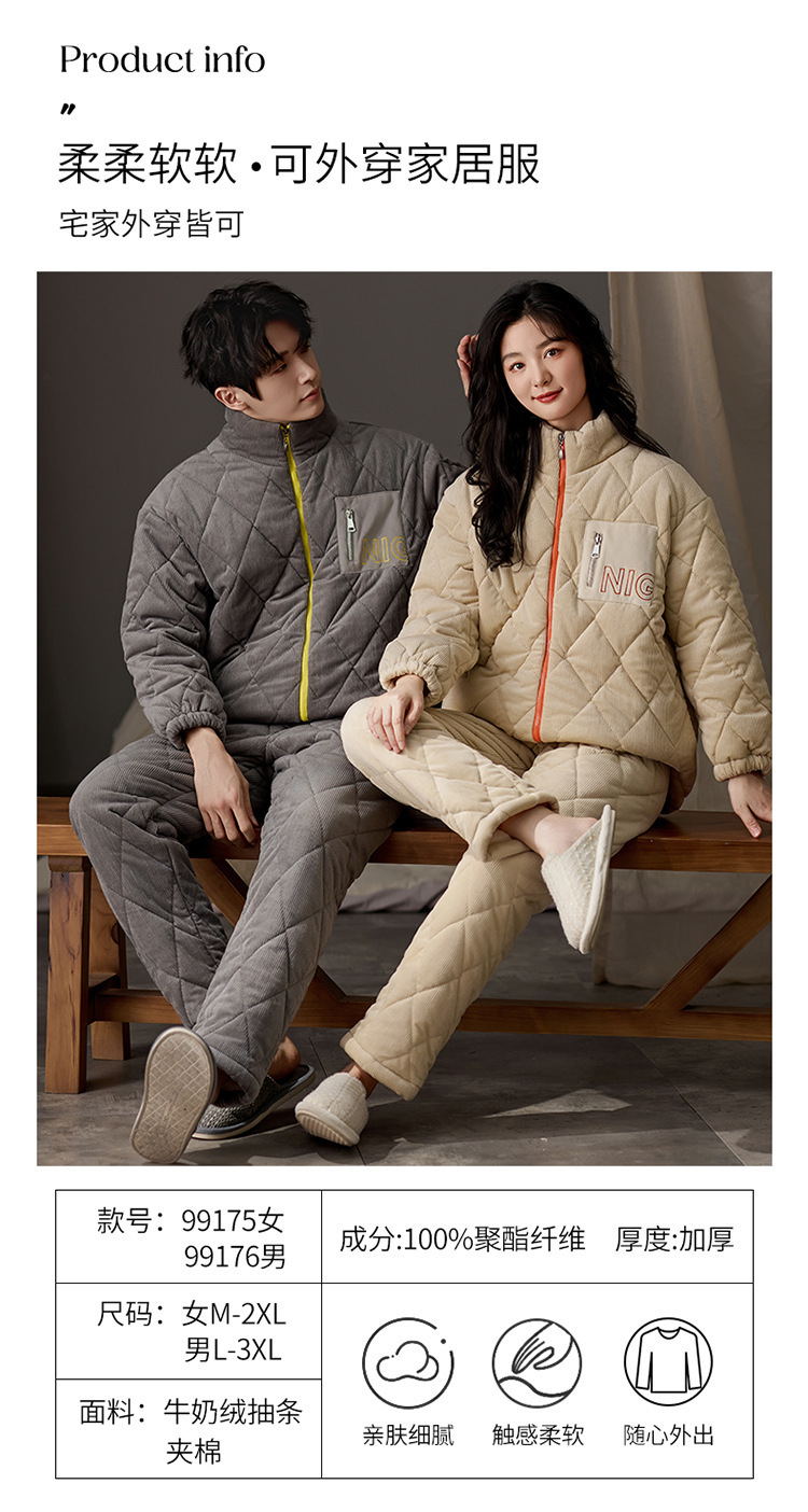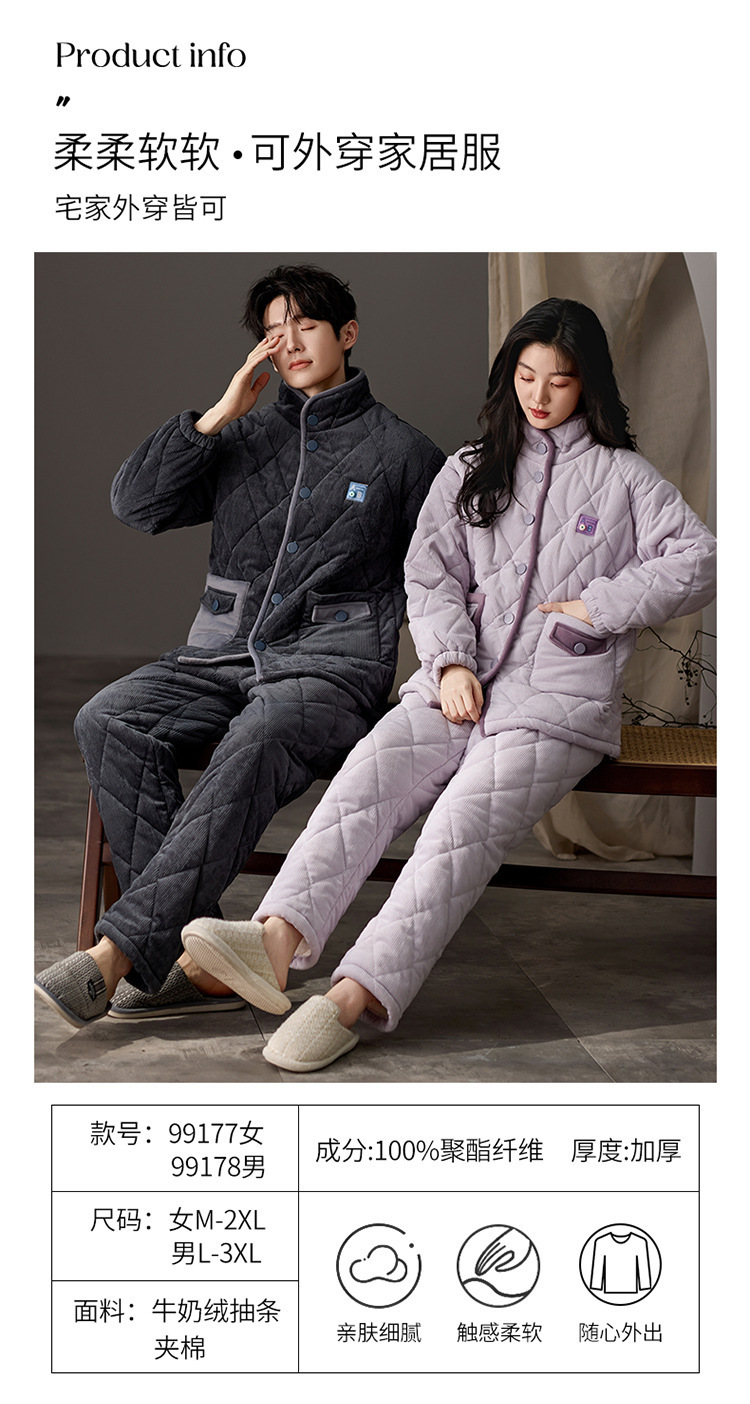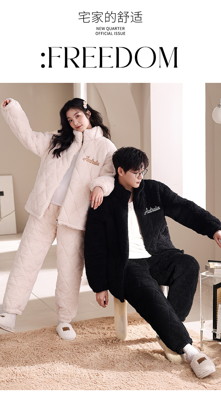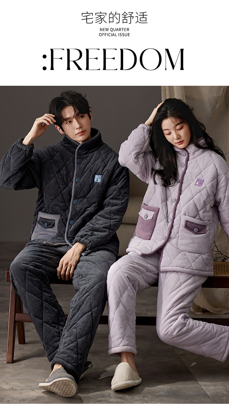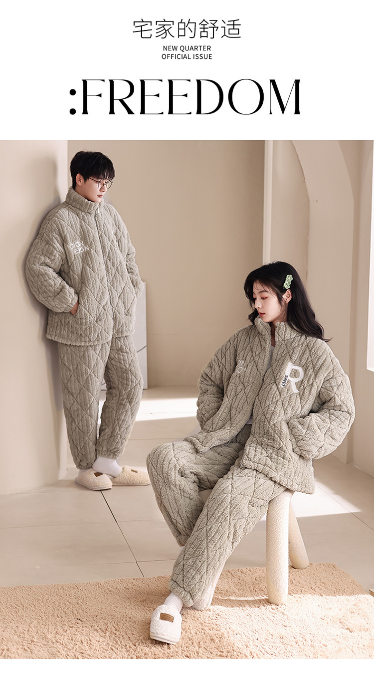겨울 커플 잠옷 여성용 산호 양털 카디건 3 층 두꺼운 기모 플란넬 코튼 패딩 재킷